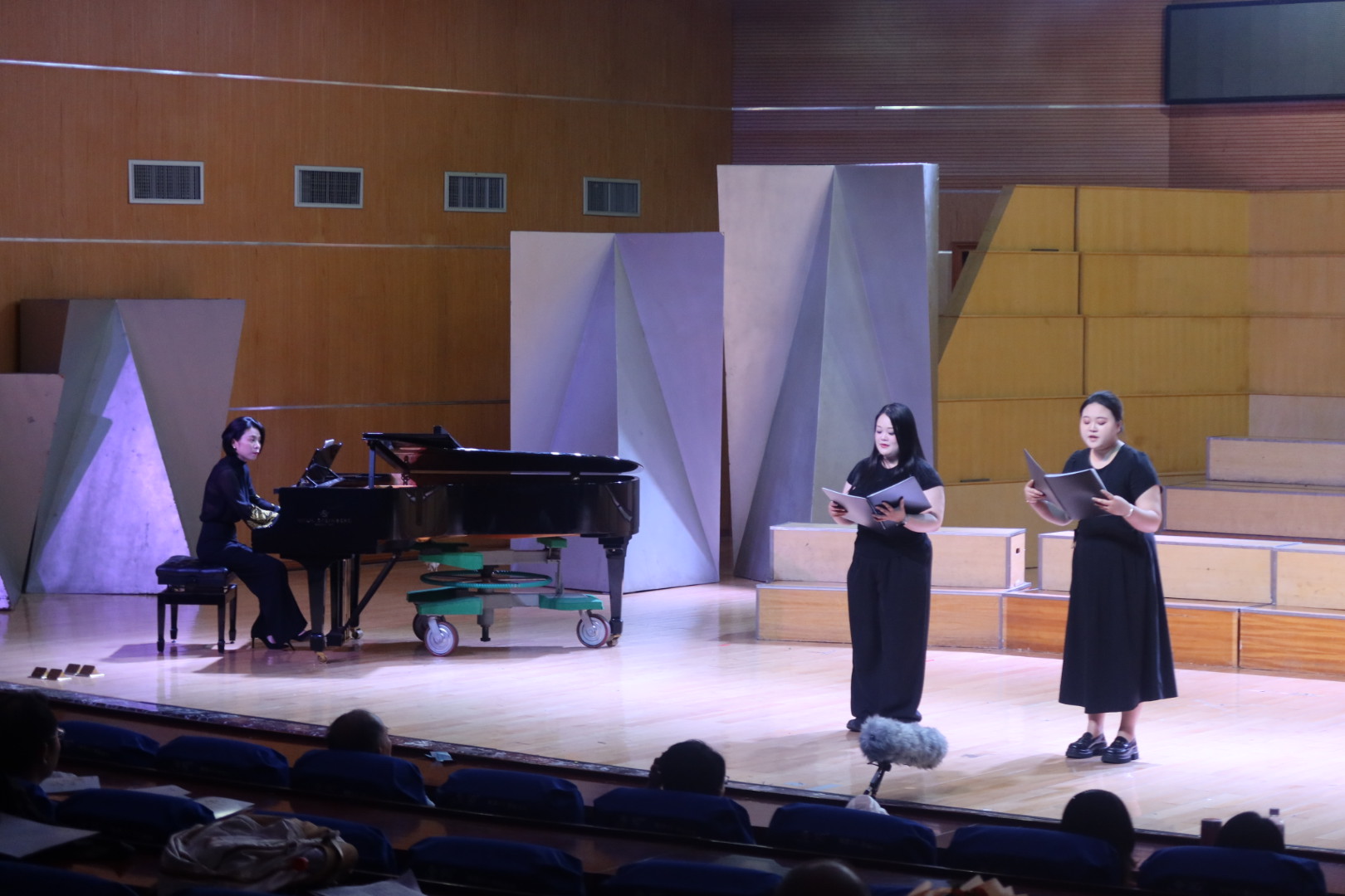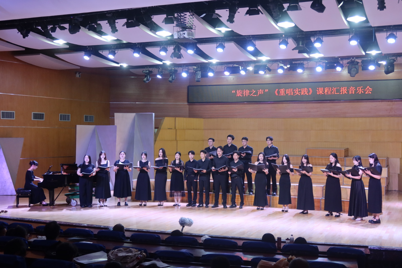 当被问到音乐会圆满落幕时内心最大的感受,以及在指导学生排练和表演过程中印象深刻的成长瞬间,肖雅老师难掩欣慰与感动,她表示:“音乐会的成功举行得益于同学们的共同努力与积极配合,在这个过程中,每个人都得到了锻炼与成长,一个学期的时间,大家从声音无法统一、找不到和声色彩的融合与变化,到能够出色的完成一整台风格各异、形式多样的重唱作品,更惊喜的是,许多作品在原曲的基础上还加入了同学们的二度创作,这样我作为指导教师非常的惊喜与欣慰。这次排演也给我了很多新的教学启示,将帮助我更好的完成之后的重唱教学。”