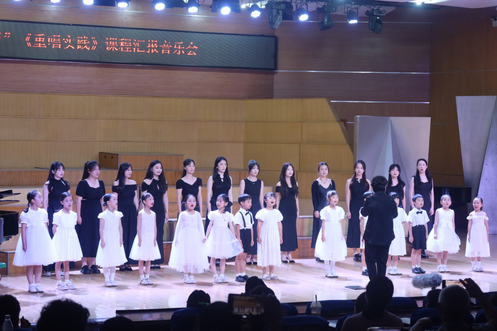 在谈及音乐会独具匠心的曲目选择时,肖雅老师介绍道:“由于课程面向音乐教育与音乐表演两个方向的硕士研究生,在曲目编排上,尽可能涵盖了不同地域、不同风格、不同时代的中外作品,力求让音乐表演的同学能多维度学习与体验重唱艺术。重唱教学在中小学音乐教育中是非常重要的一环,作为音乐教育专业的学生,除了掌握多声部音乐演唱的技巧,更重要的是具备在实践教学中进行编创与排练的能力。因此我们与岳阳市南湖小学一年级的小朋友们共同完成了两首作品的编排,让学生能够近距离的参与到小学重唱艺术实践当中,丰富他们的教学经验。另外我们也邀请到了由岳阳市中小学音乐教师组成的徵羽合唱团,增进同学们与一线教师的交流学习。”