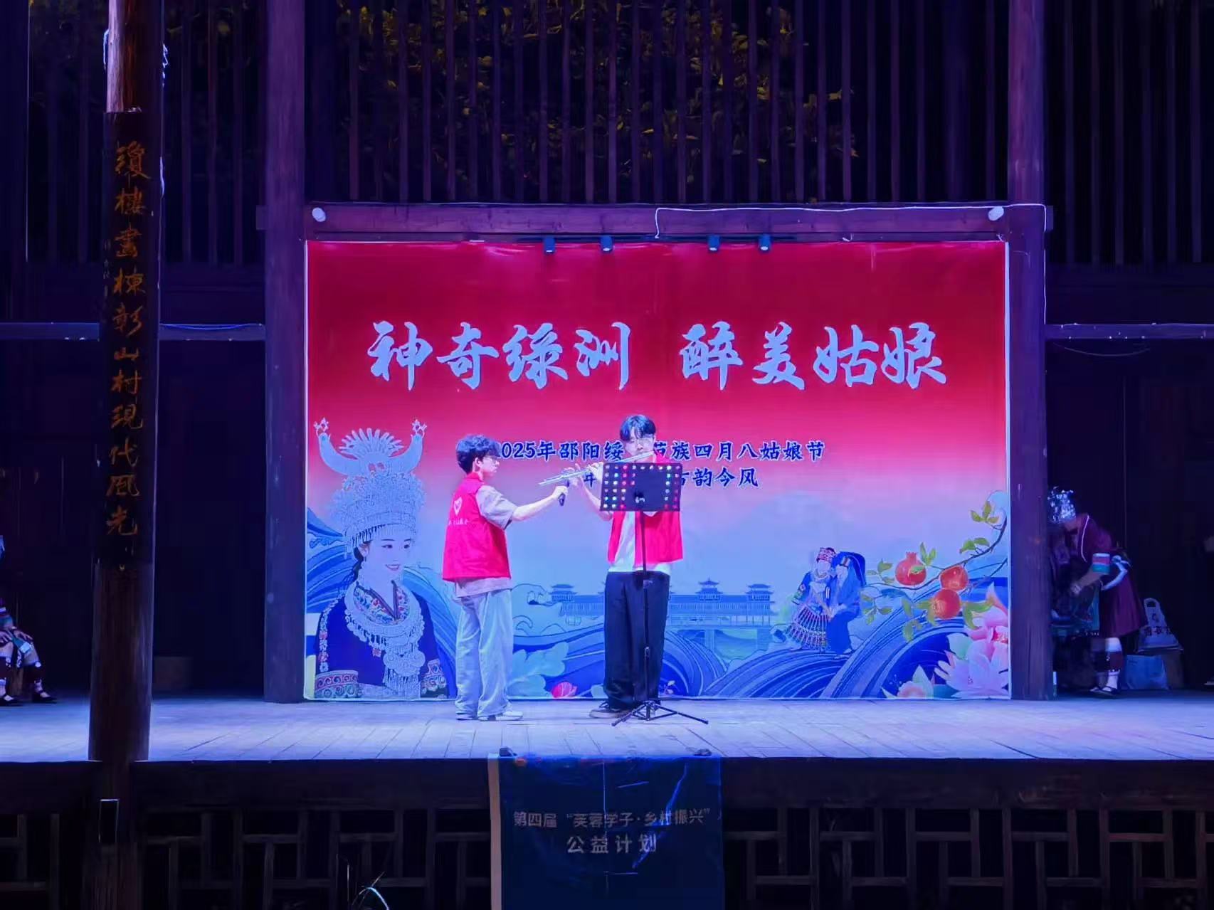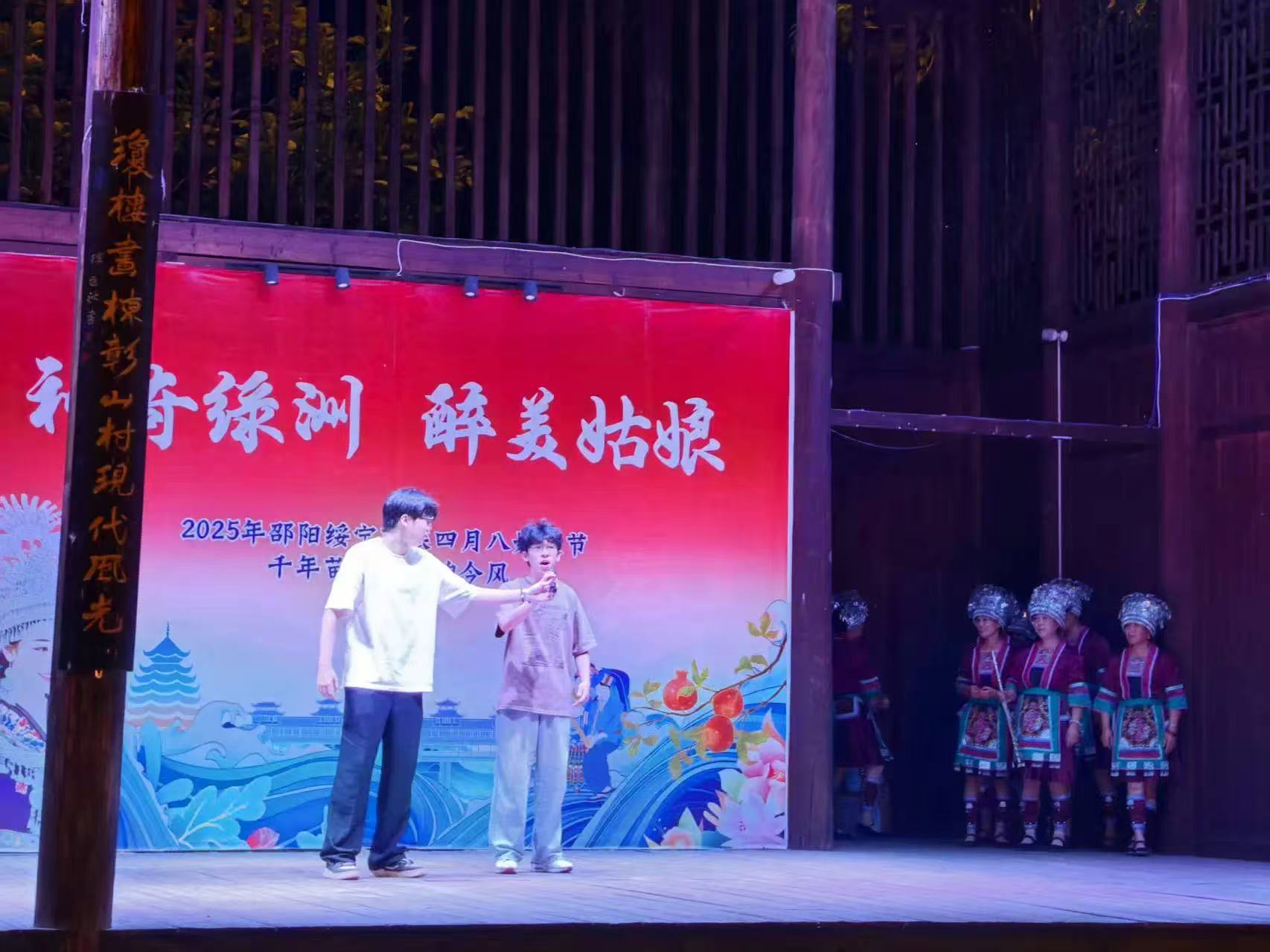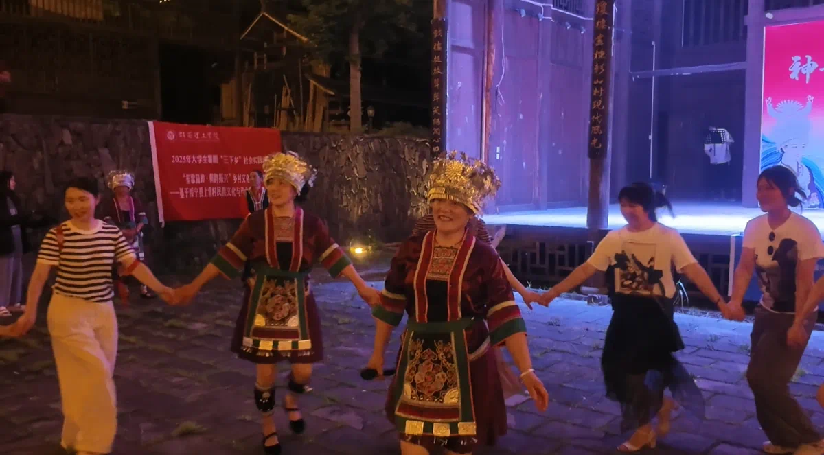 夜深,篝火渐成星子,众人哼起古老歌谣。围坐听大哥用侗语讲月亮传说,长笛轻搭旋律,火光在每个人脸上明明灭灭。忽然明白,今晚《梁祝》的笛声是落进苗岭的蝶,《青玉案》的词句是沾了米酒的诗,竹竿舞里踩错的步子,都是星光下最鲜活的注脚——乡村振兴的故事,从不止于田野调研,更藏在与歌声、笑语、侗族乡亲手挽手跃动的夏夜烟火里。