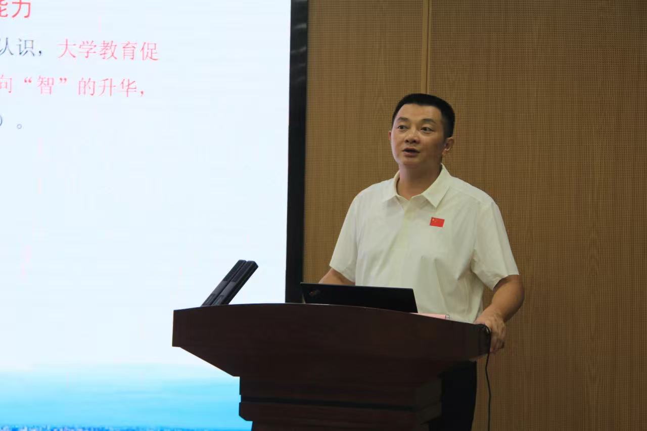 学院党委副书记蔡奕聚焦学生实际需求,从学生的专业学习、学生干部自信心树立、就业帮扶等现实问题出发,呼吁师生要满怀信心、奋勇向前,主动拥抱变化,共同破解成长难题。此外,蔡书记还列举了本年度同学们取得的部分成绩,并对大家的努力与成果给予肯定。