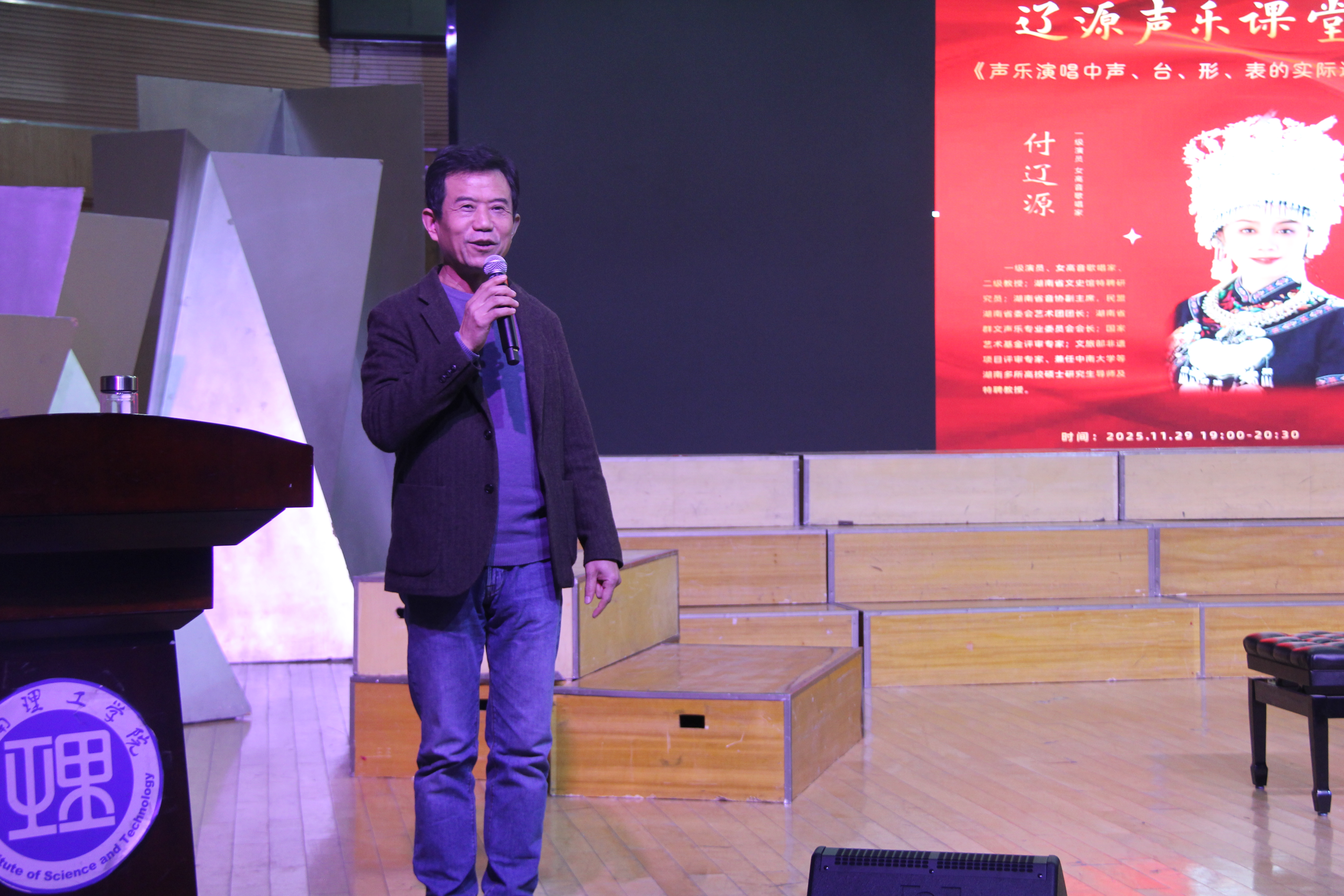 2025年11月29日晚,304am永利集团在音乐厅成功举办了主题为“声乐演唱中声、台、形、表的实际运用”的公益讲座。本次讲座由一级演员、女高音歌唱家付辽源老师主讲。