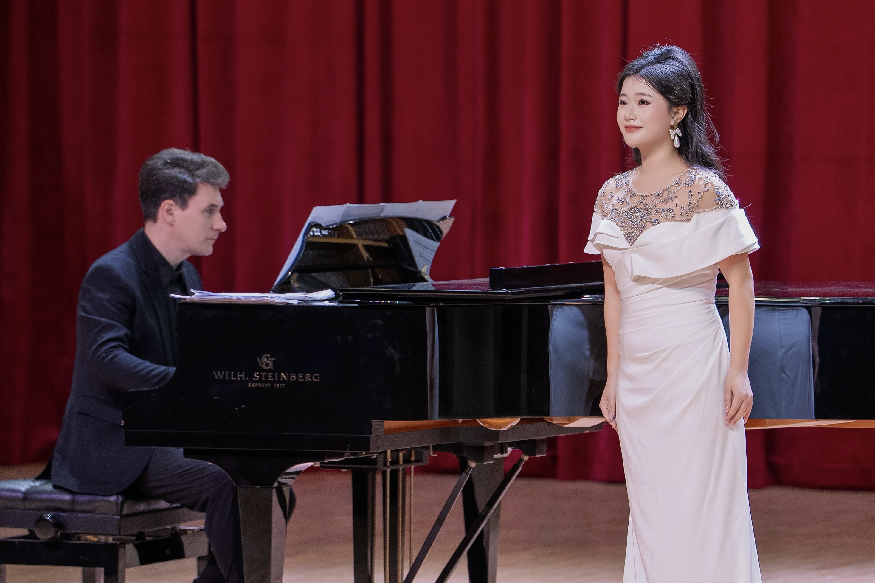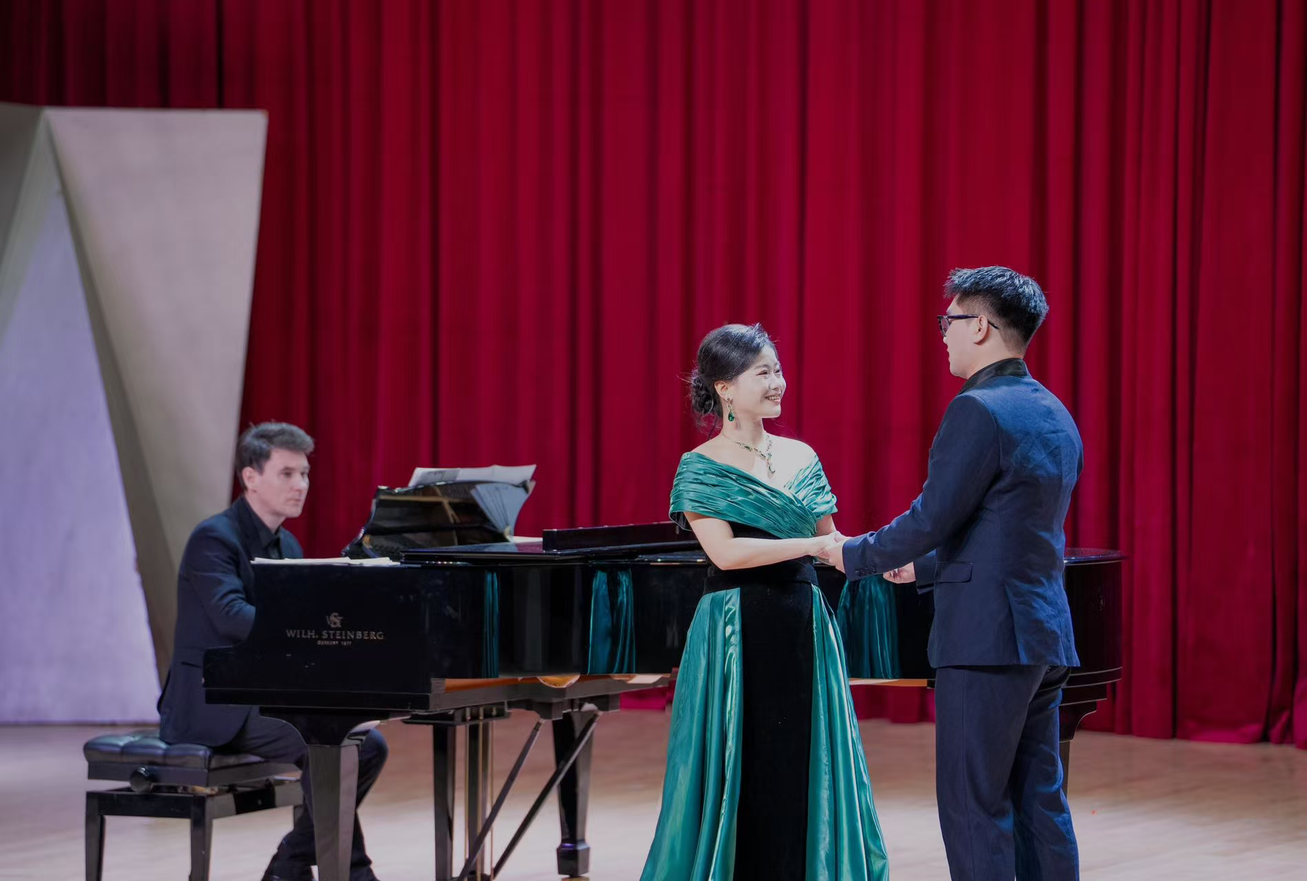 2025年11月21日晚,董箐声乐表演艺术硕士学位音乐会于学院音乐厅顺利举办。本次音乐会由王白菊教授指导,伊利亚•契什科夫担任艺术指导,2024级研究生瞿晓杨主持,特邀2023级本科生郭子源出演,304am永利集团部分师生到场观看。