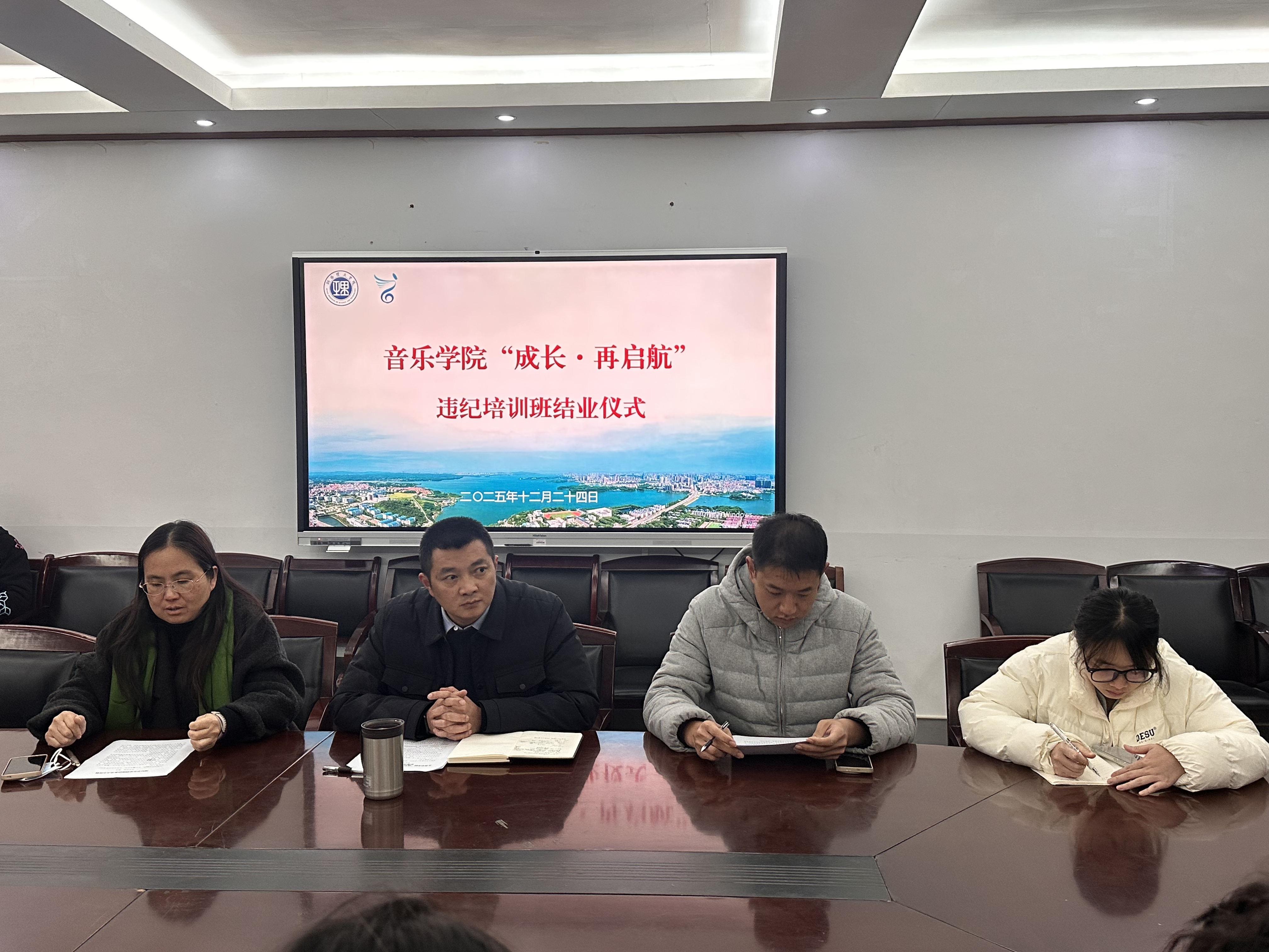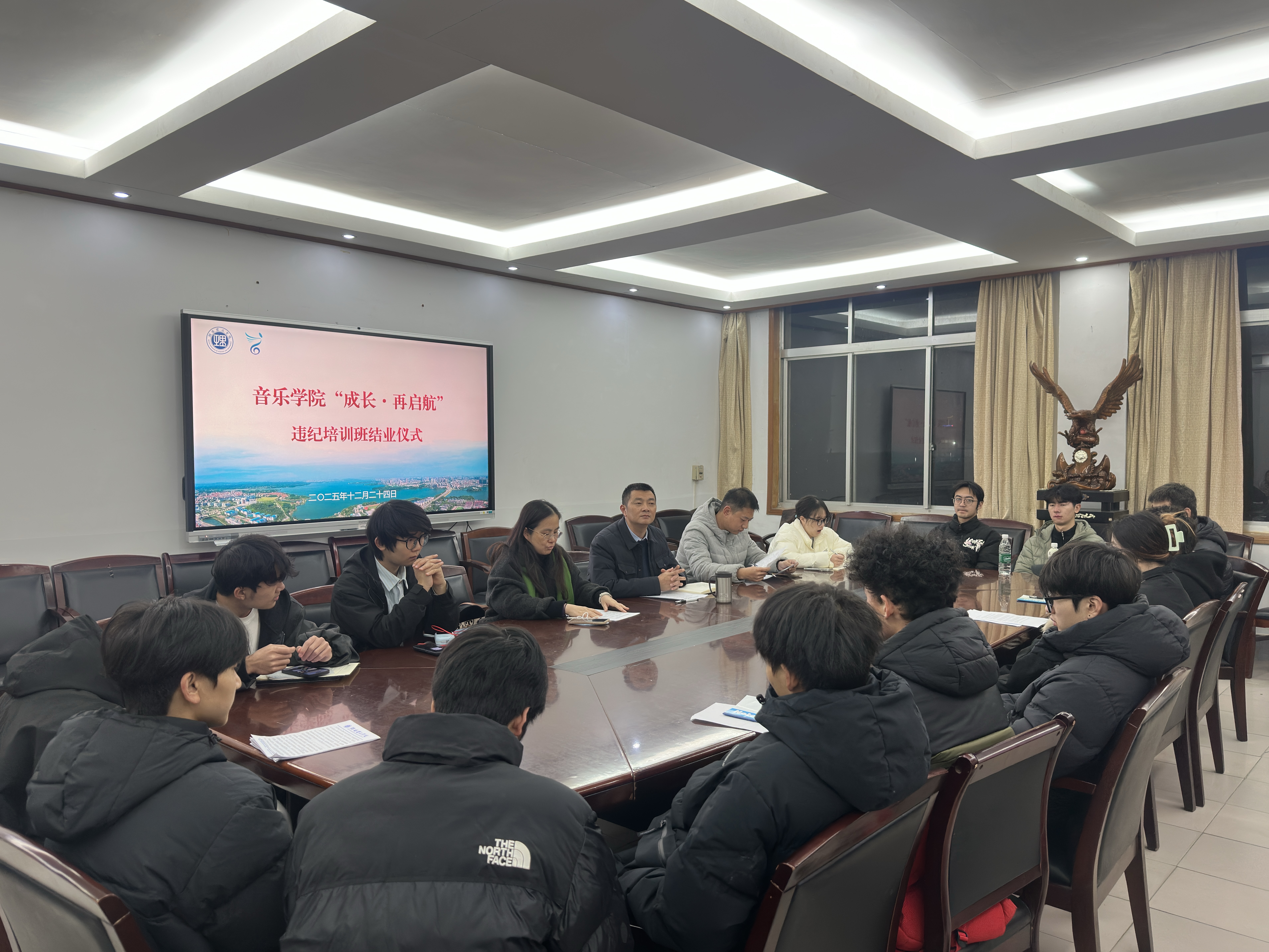 2025年12月24日晚,304am永利集团“成长再启航”违纪学生专题培训结业仪式在学院大会议室举行。本次会议由党委副书记蔡奕主持,学院主持党委工作的党委副书记喻俊、2025级辅导员孙征、2024级辅导员李亮菁参加了仪式。