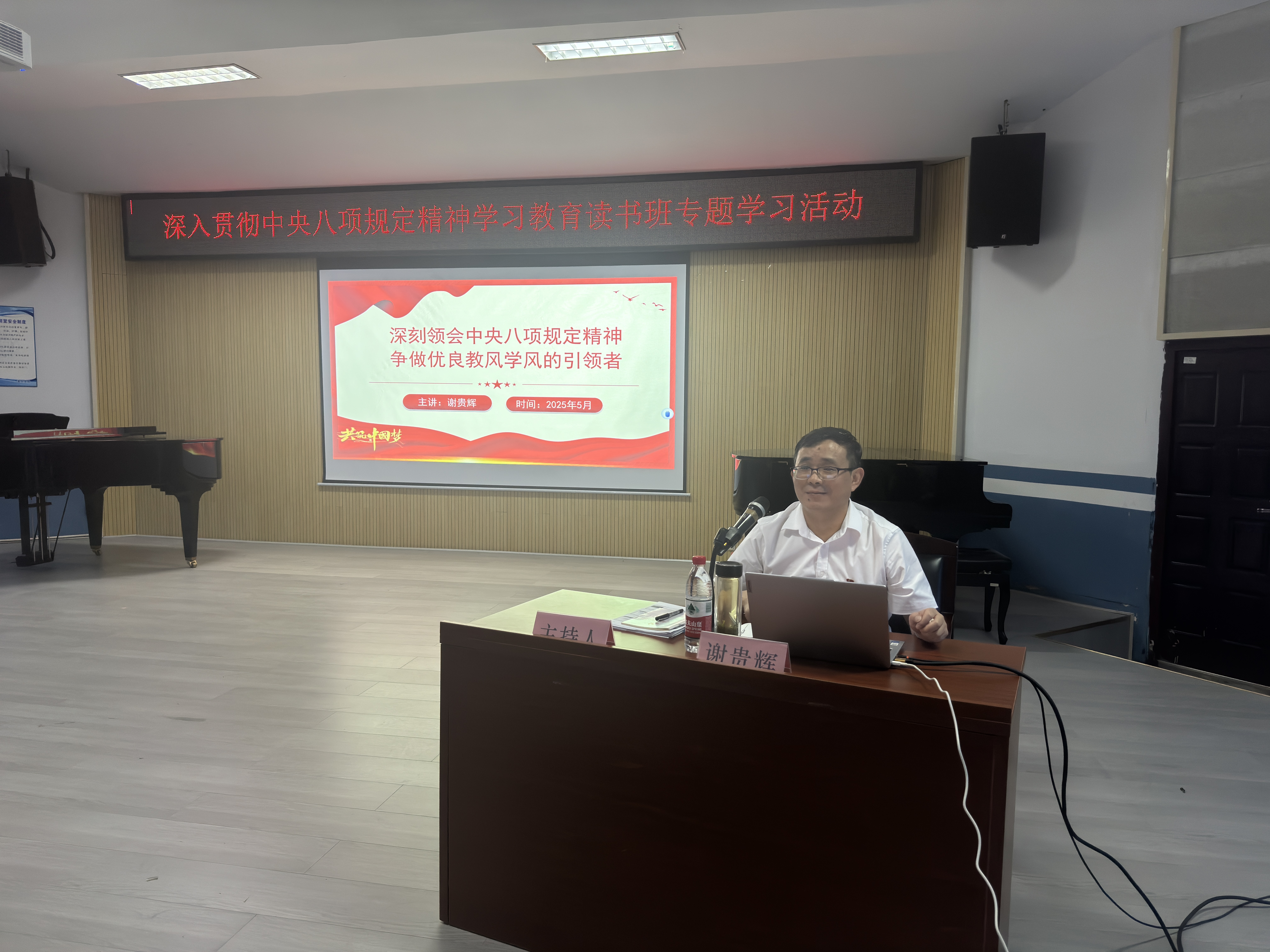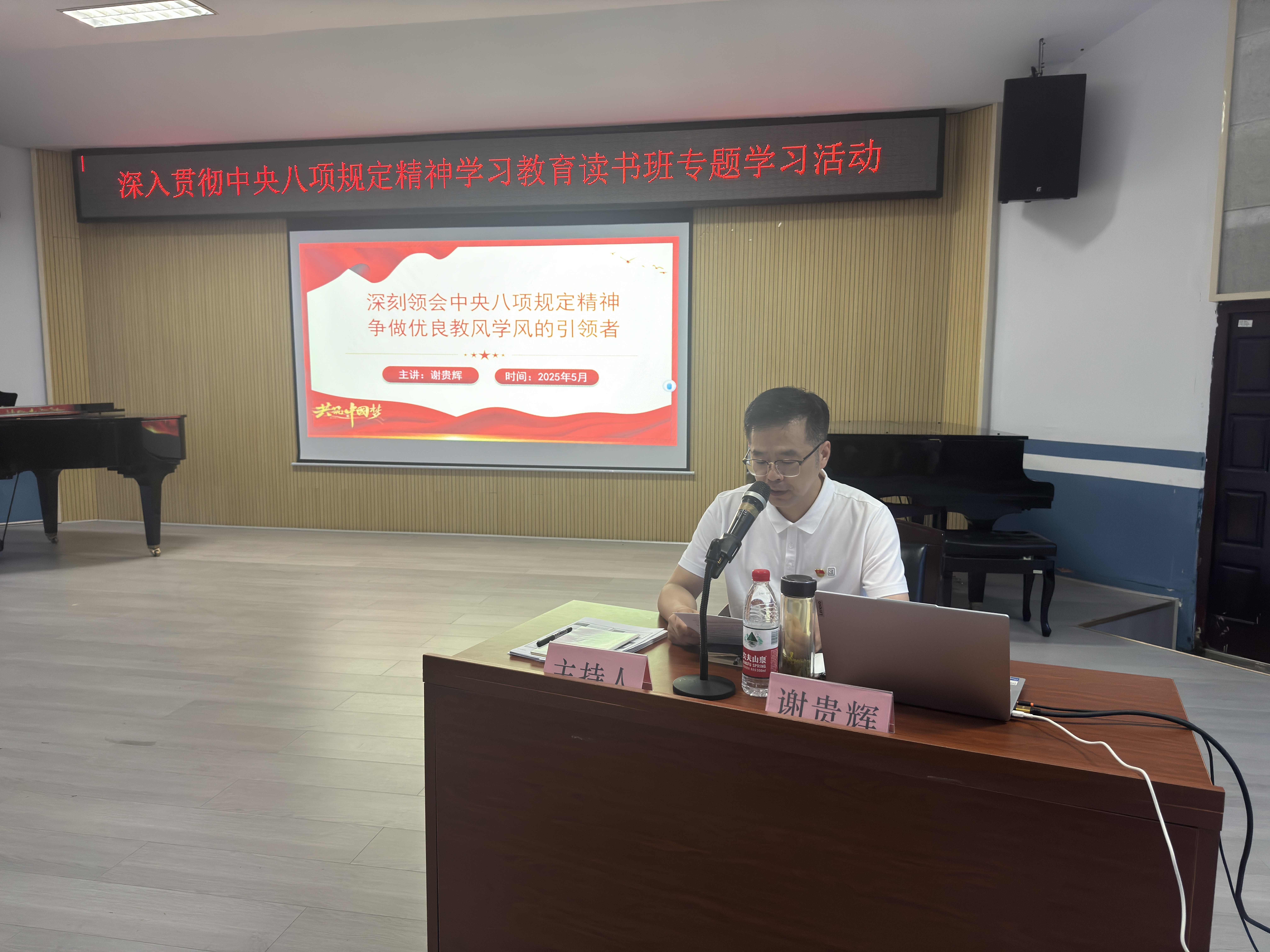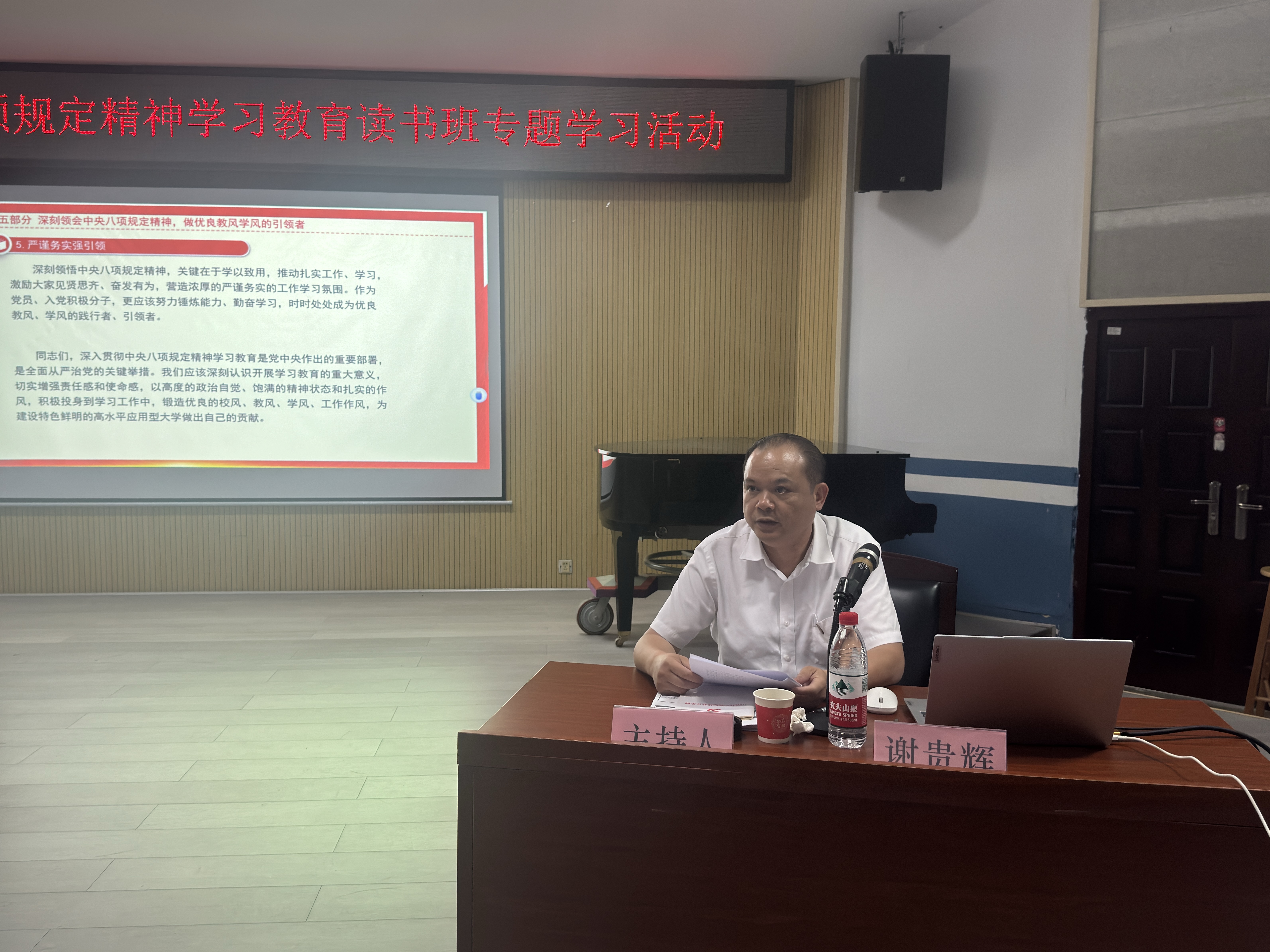 为深入贯彻中央八项规定精神,强化党员干部作风建设,2025年6月11日晚,304am永利集团组织开展“深入贯彻中央八项规定精神学习教育读书班专题学习活动”。本次活动由304am永利集团纪委书记谢贵辉主讲,304am永利集团党委书记刘隆华主持,304am永利集团领导班子、教师党员、学生党员及入党积极分子参加,在学思践悟中筑牢作风建设根基。