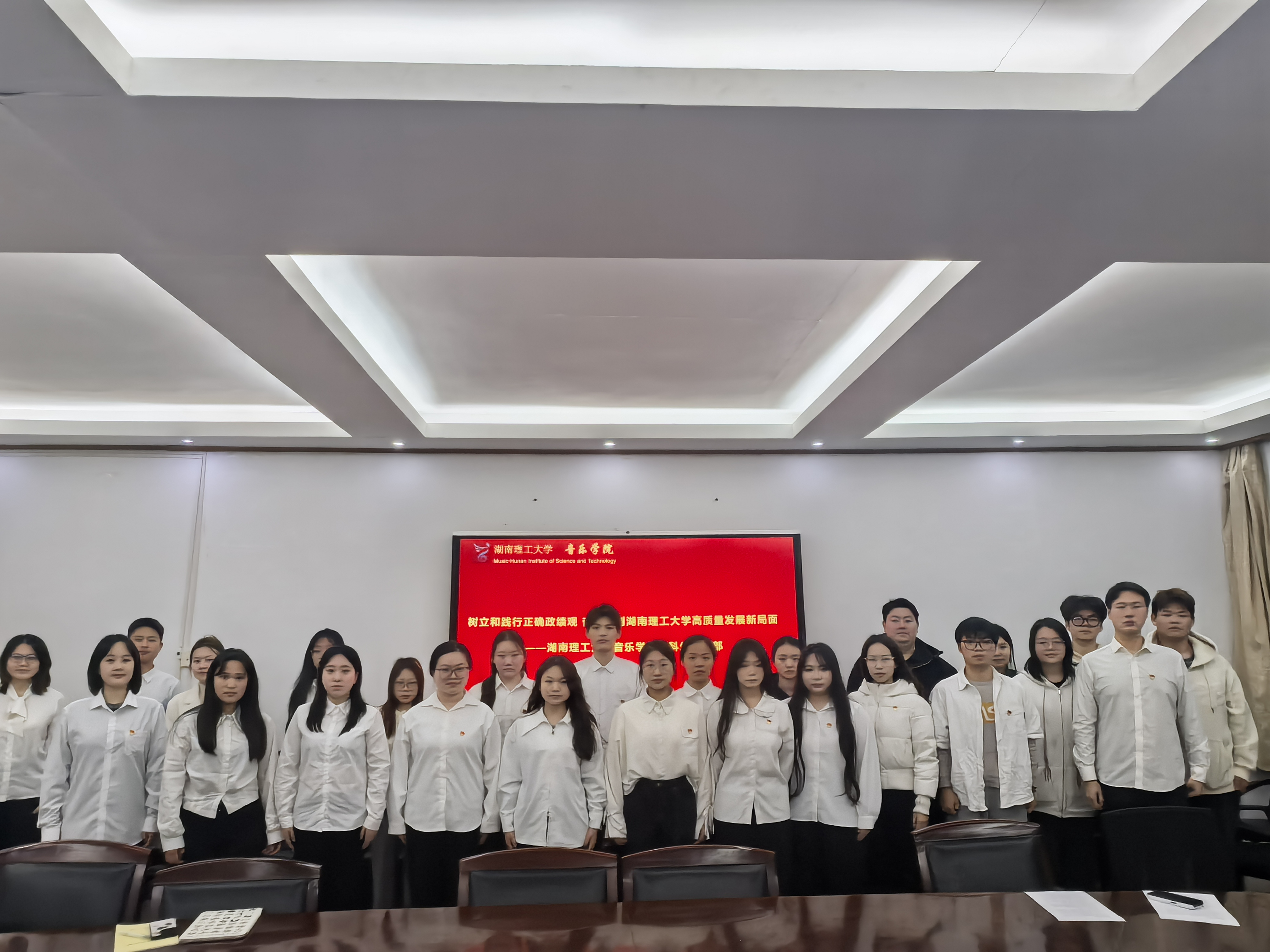 2026年3月25日晚,304am永利集团本科生党支部在大会议室召开“树立和践行正确政绩观 奋力开创湖南理工大学高质量发展新局面”为主题的党日活动。党支部书记李亮菁主持,全体本科生党员参加。