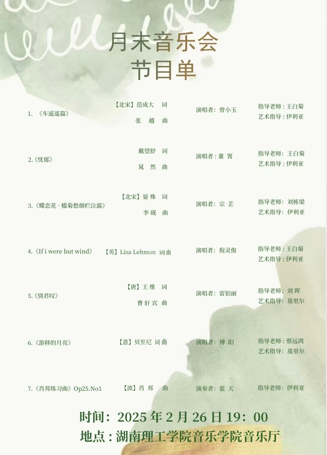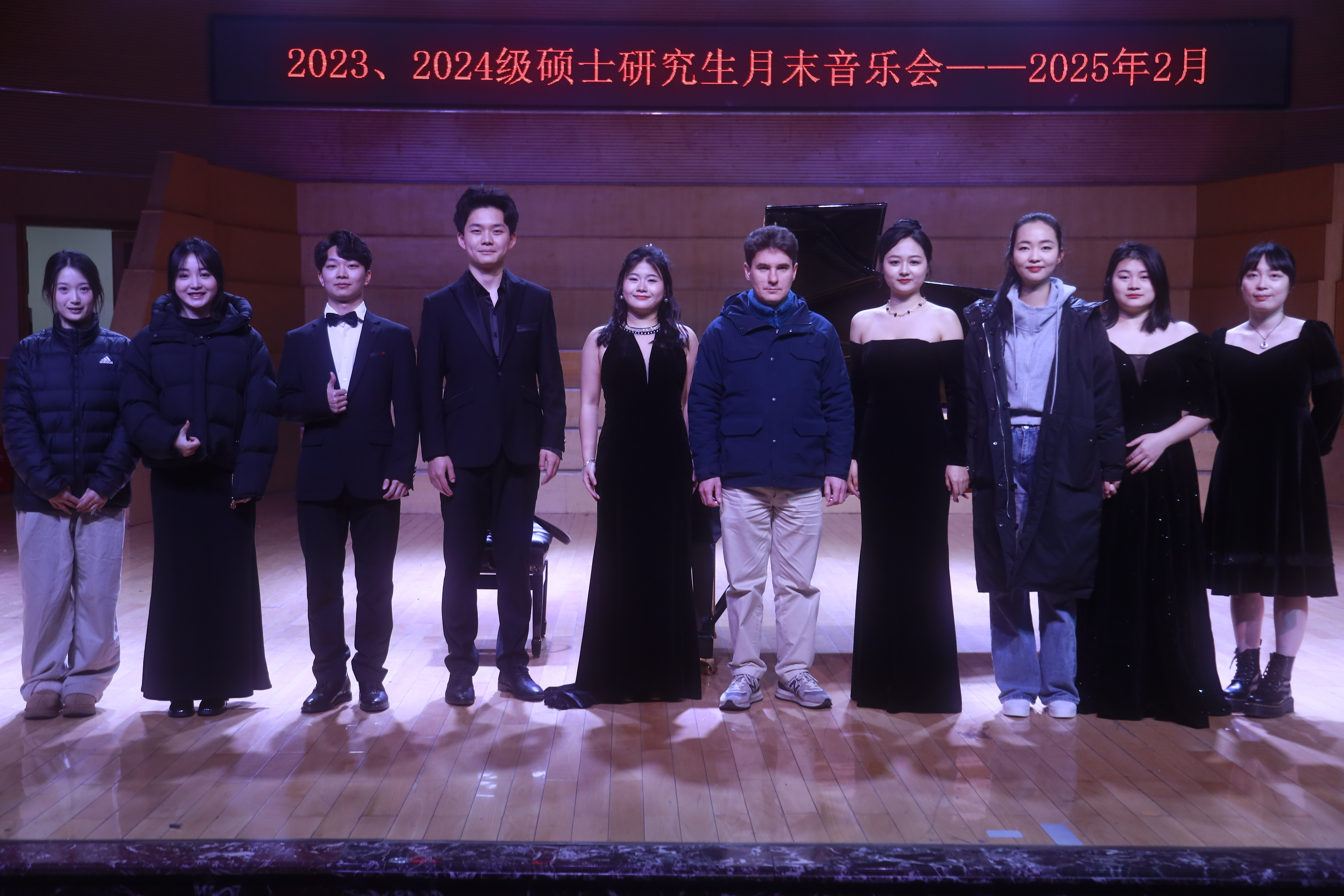 304am永利集团,304am永利集团研究生月末音乐会于2月26日晚在音乐厅隆重举行,钢琴、声乐表演研究生们共同呈现了一场精彩绝伦的月末音乐会,展现了7位研究生们学习成果,魏紫玥担任本次音乐会主持人。音乐会汇聚了中外经典诗词与音乐作品,带领观众穿越时空,感受文字与音符的完美结合。
