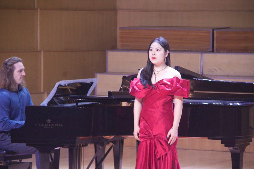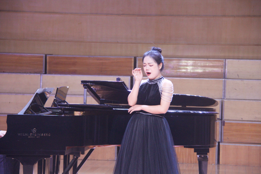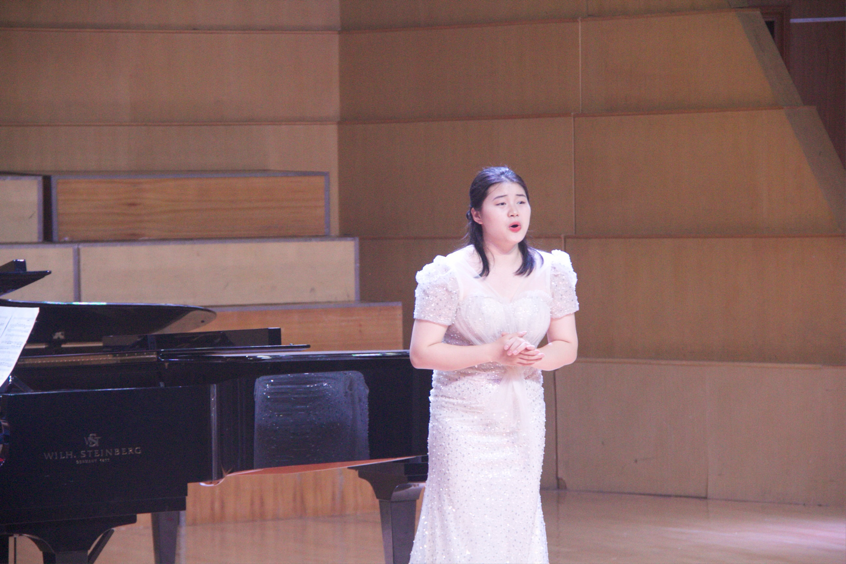 音乐会的上半场由声乐表演的研究生进行歌剧选段以及艺术歌曲的展示。《主人,您听我说》选自普契尼歌剧《图兰朵》,由瞿晓杨演唱。这首咏叹调表达了侍女柳儿对王子的忠贞之情,旋律优美动人。《夜与梦》舒伯特艺术歌曲,作品展现了浪漫主义时期对夜晚与梦境的诗意描绘。《你就会看到》选自莫扎特歌剧《唐璜》,这是一首充满戏剧性的咏叹调,展现了女主角复杂的情感变化。《迎接》由宗芷演唱,作品品融合了东西方音乐元素,富有现代气息。《生活啊,生活》选自施光南歌剧《伤逝》。这首作品深刻表现了主人公对生活的思考与感悟。《梦》拉赫玛尼诺夫艺术歌曲,由倪灵俊演唱,作品充满俄罗斯式的忧郁与深情。《白日飞升》选自《再别康桥》,作品展现了诗人徐志摩笔下的浪漫情怀。《献词》舒曼艺术歌曲,由董菁演唱。这是舒曼献给新婚妻子克拉拉的深情之作。《我亲爱的爸爸》选自普契尼歌剧《贾尼·斯基基》,这首咏叹调以其优美的旋律广为流传。《更漏子·玉炉香》由孙雨欣演唱。作品将唐诗的意境与现代音乐完美结合。