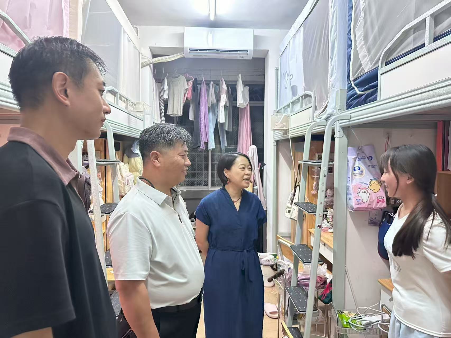 2025年9月1日晚,304am永利集团全体院领导带领全体辅导员、班主任及部分学生干部走访学生宿舍,围绕寝室安全、外宿管理、住宿环境、新学期学习情况及个人规划等方面与学生进行面对面交流,细致了解学生需求,为他们新学期的学习与生活提供指导和支持。