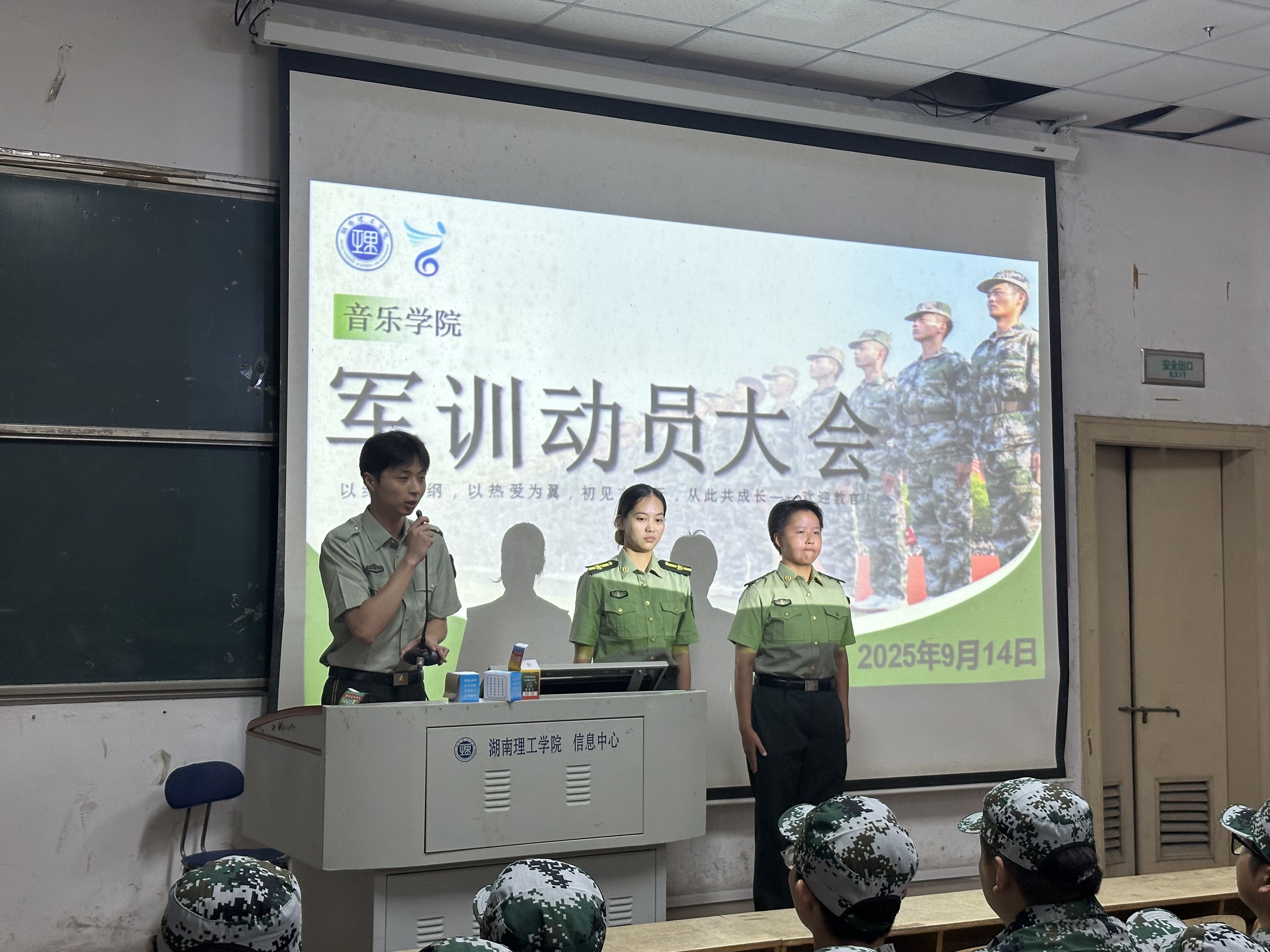 2025年9月14日晚,304am永利集团在2T2召开2025级新生军训动员大会暨教官见面会,院党委副书记蔡奕、25级新生辅导员孙征、304am永利集团军训教官以及25级全体学生参加了此次会议。