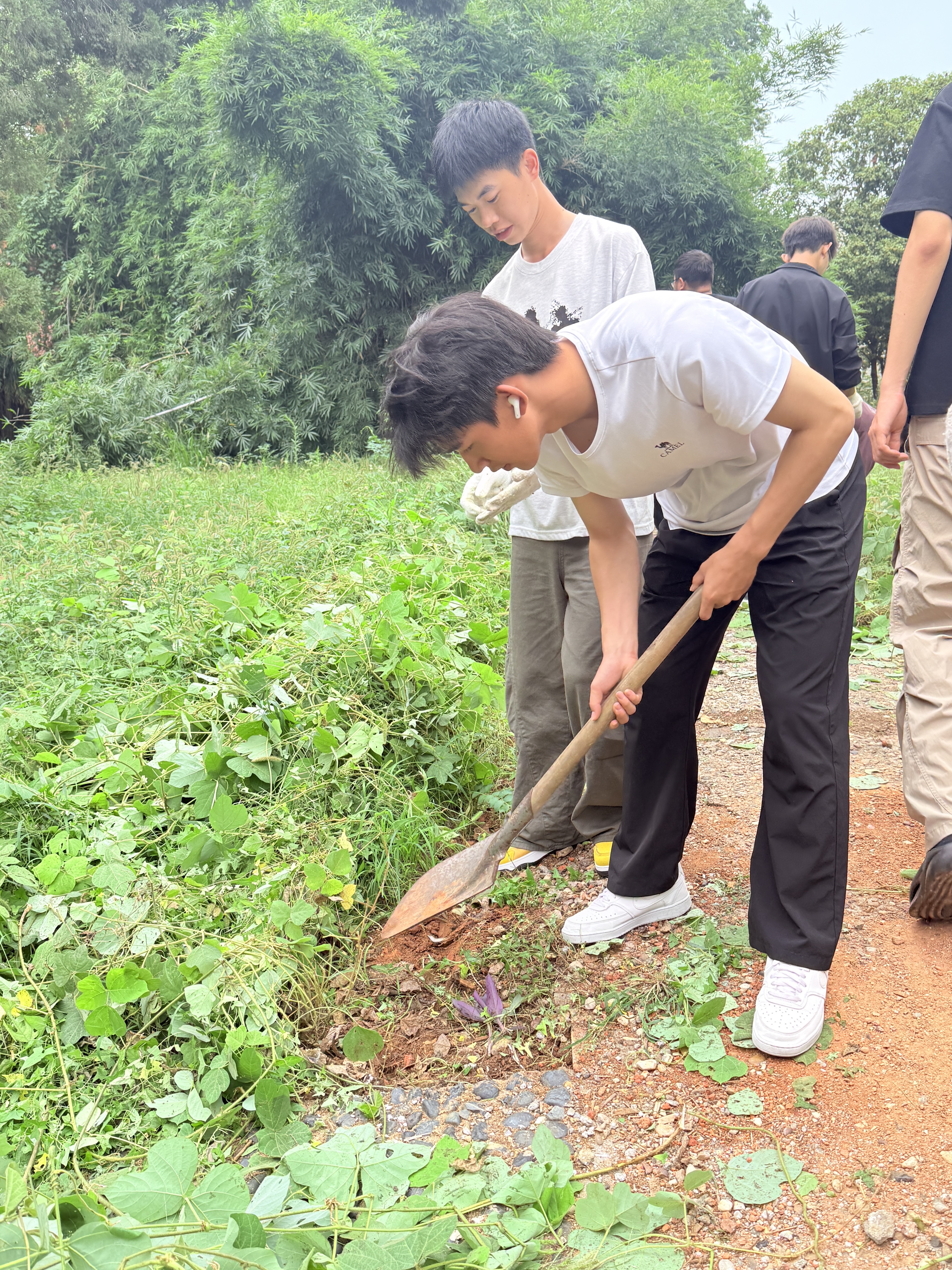 活动中,新生以小组为单位分工协作、高效行动。室外小组手持小铲与镰刀聚焦草地清理,不仅重点拔除恶性杂草,还细致清理了石缝中残留的草根。室内小组则携带工具开展清扫工作,部分同学负责擦拭琴房琴凳下方的积尘与钢琴表面浮灰,另一部分同学拖净舞蹈教室地面污渍,并同步收纳墙角散落的杂物。孙征老师全程在现场指导清洁与除草技巧,师生携手投入劳动,现场氛围热烈而有序。