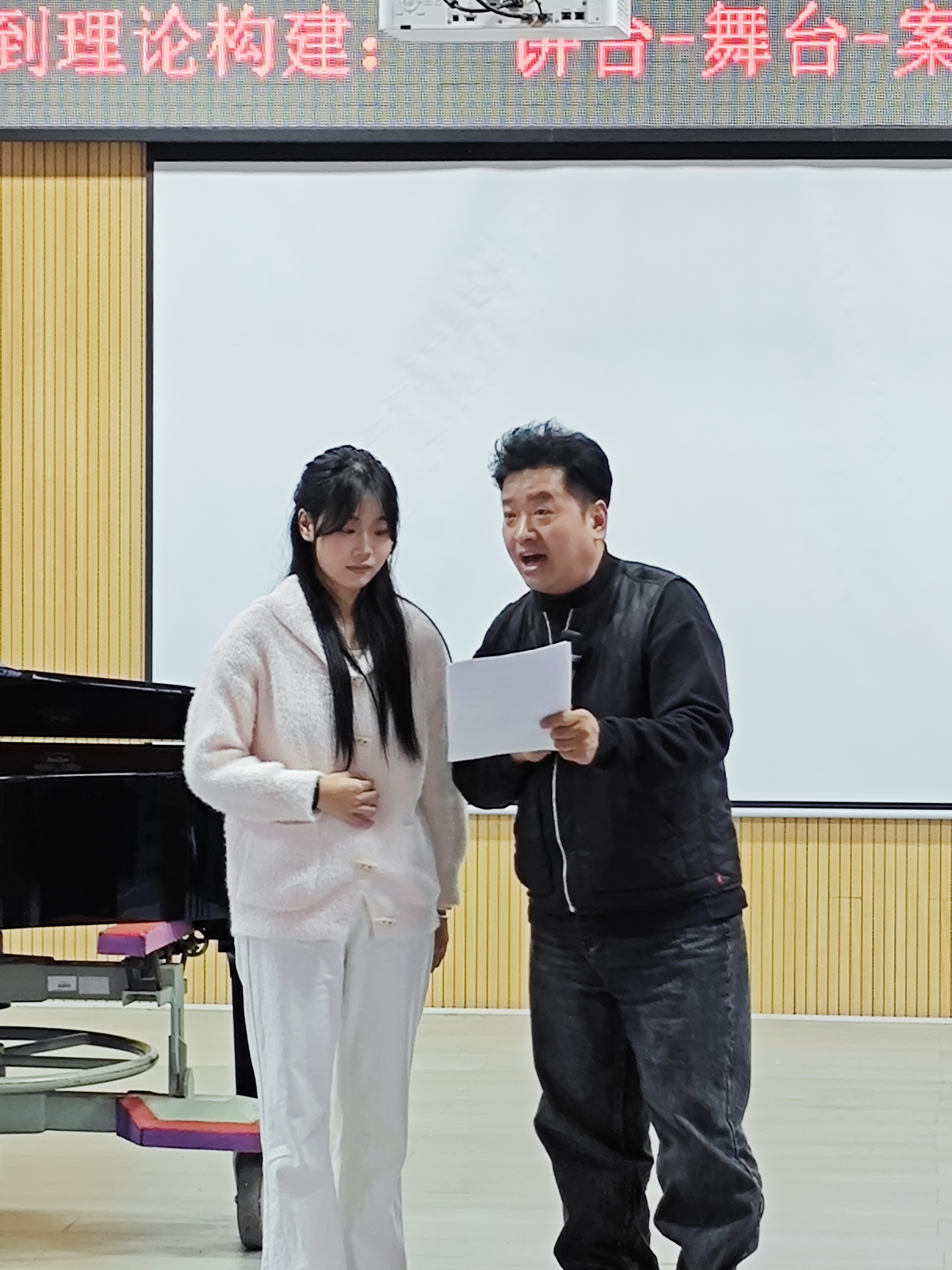 在教学理念方面,吴教授提出“以学生为本”,注重发掘学生的本真声音,倡导自然歌唱状态。他独创的“讲台—舞台—案台”育人模式,融合教学、实践与研究,旨在培养学生全方位能力。现场,吴教授还邀请学生演唱并进行专业指导,实现理论与实践的有机结合。