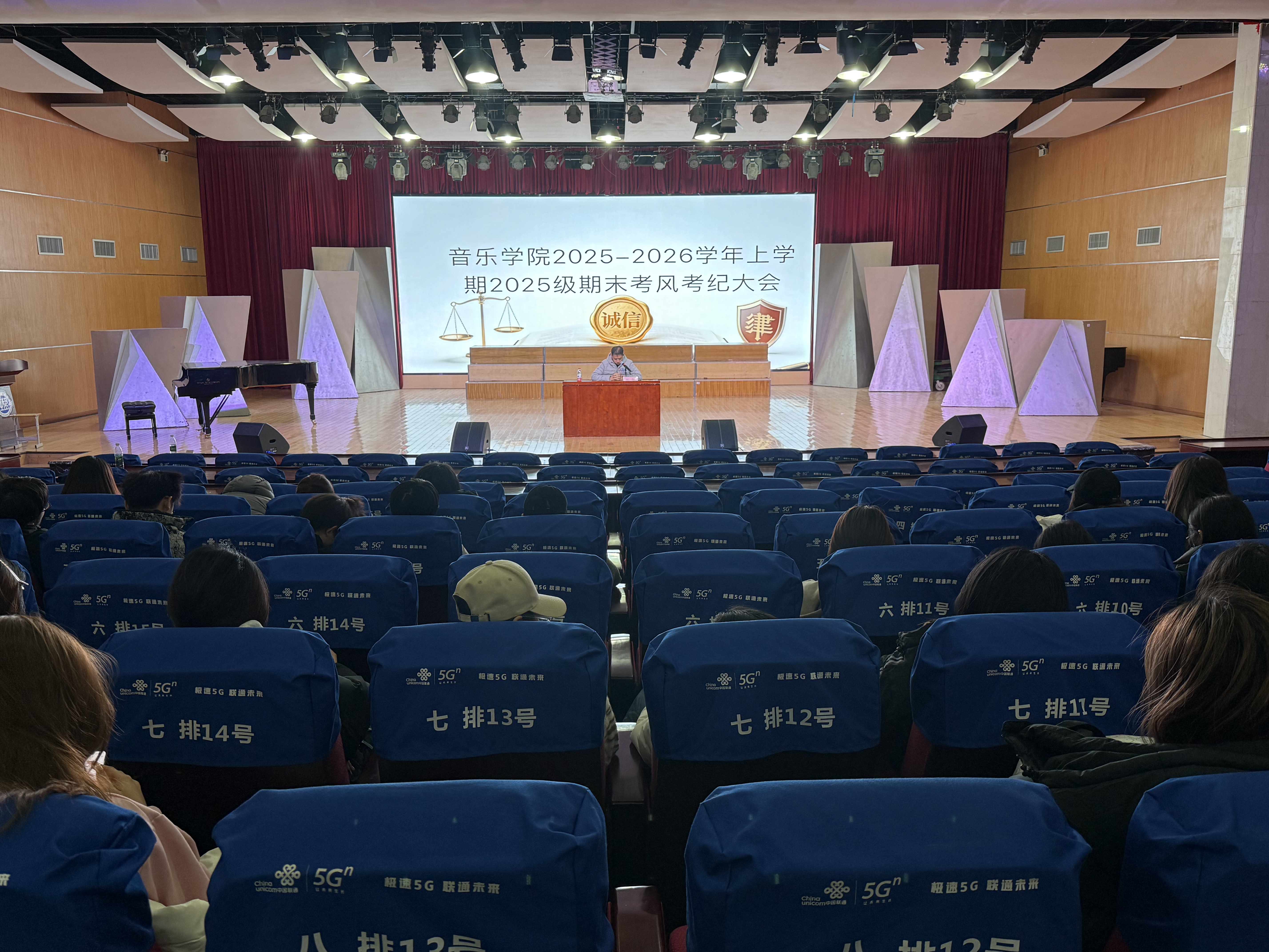 2025年12月25日晚,304am永利集团在音乐厅召开2025级学生期末考试考风考纪大会。2025级辅导员孙征出席本次会议,2025级全体学生参加。