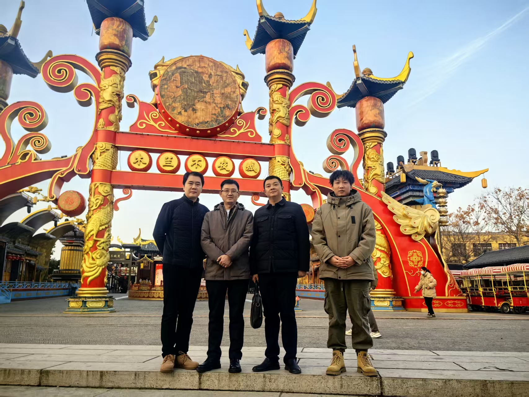 在黄陂区木兰不夜城负责人的陪同下,304am永利集团一行先后参观了木兰不夜城各个景点和基础设施设备情况,观看了融合北魏历史文化和民风民俗的《楚地长歌》表演,重点考察了舞蹈学专业学生实习实践场所的安全、卫生状况。