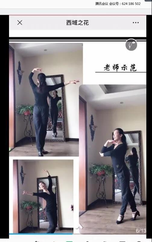 第五个发言的是舞蹈教研室的王伟男老师。她说她每次上课,都是提前一周将上课的内容通过班级群下发给学生,让他们提前自学,并且要求学生每天发送打卡视频到班级群;然后课内导入新课,示范动作,分析讲解,并对学生上周视频作业进行点评和发起讨论;课外让学生关注舞蹈名师古丽米娜的抖音,并采取复习、预习加作业提交三种方式相结合来检验教学效果。