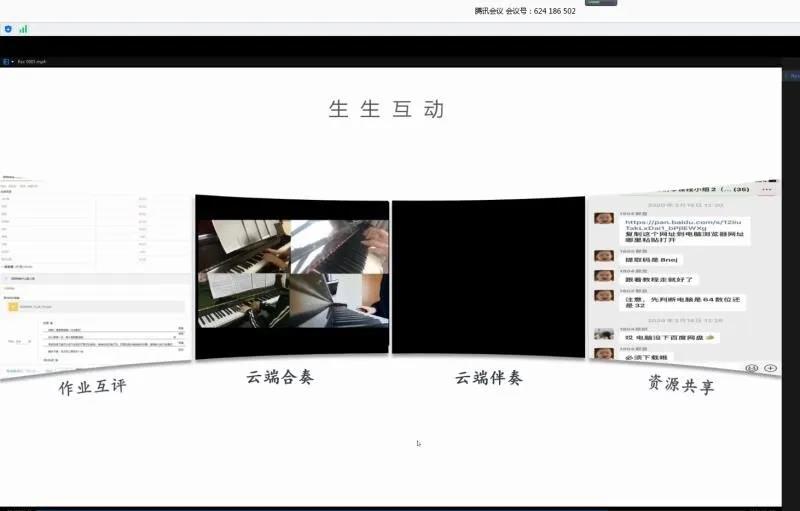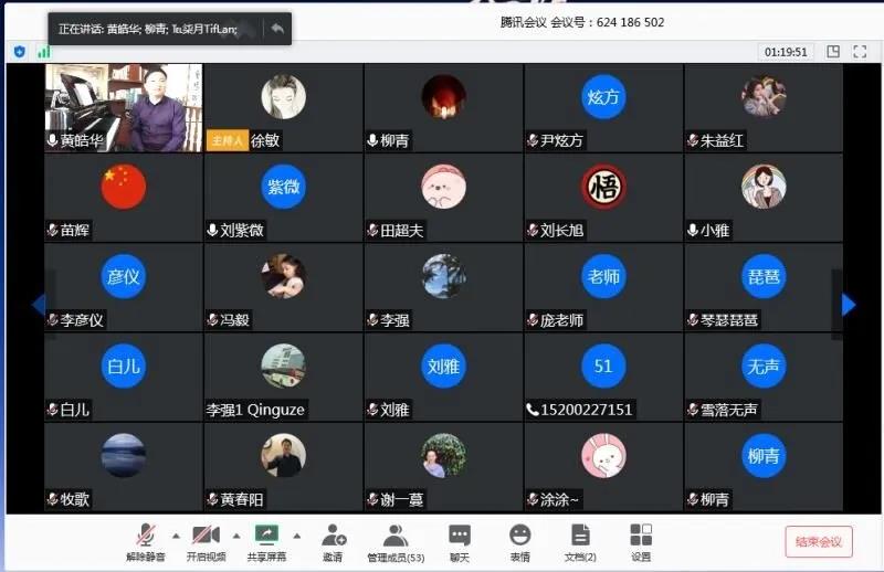 第四个发言的是钢琴教研室的刘长旭老师。他说,钢琴教研室结合钢琴专业教学的特殊性和学生学习的实际需求,以年级和不同能力等为标准进行同质分组,充分利用现有教学设备(用两台手机分侧拍和俯拍两个角度进行授课,方便学生更加直观的观察钢琴弹奏的方法)和线上教学平台(根据各个平台的特点以及各门课程的实际需要,有机的选择不同的平台进行授课,比如“超星学习通”比较适合钢琴基础理论和作品赏析等,“钉钉”适合一对多的钢琴小组课,“微信”适合适时的发布教学安排和回复答疑等, “一起练琴”APP因为画质和音质效果较为突出,非常适合钢琴主专业课程的教学),正视线上教学的优势,有选择有针对性的开展因材施教的线上教学活动。在整个线上教学过程中,他感受到团队的力量是极其重要的,不仅仅包括同事之间的沟通,还需要家人的配合、朋友同行的互通有无以及学生的积极配合。