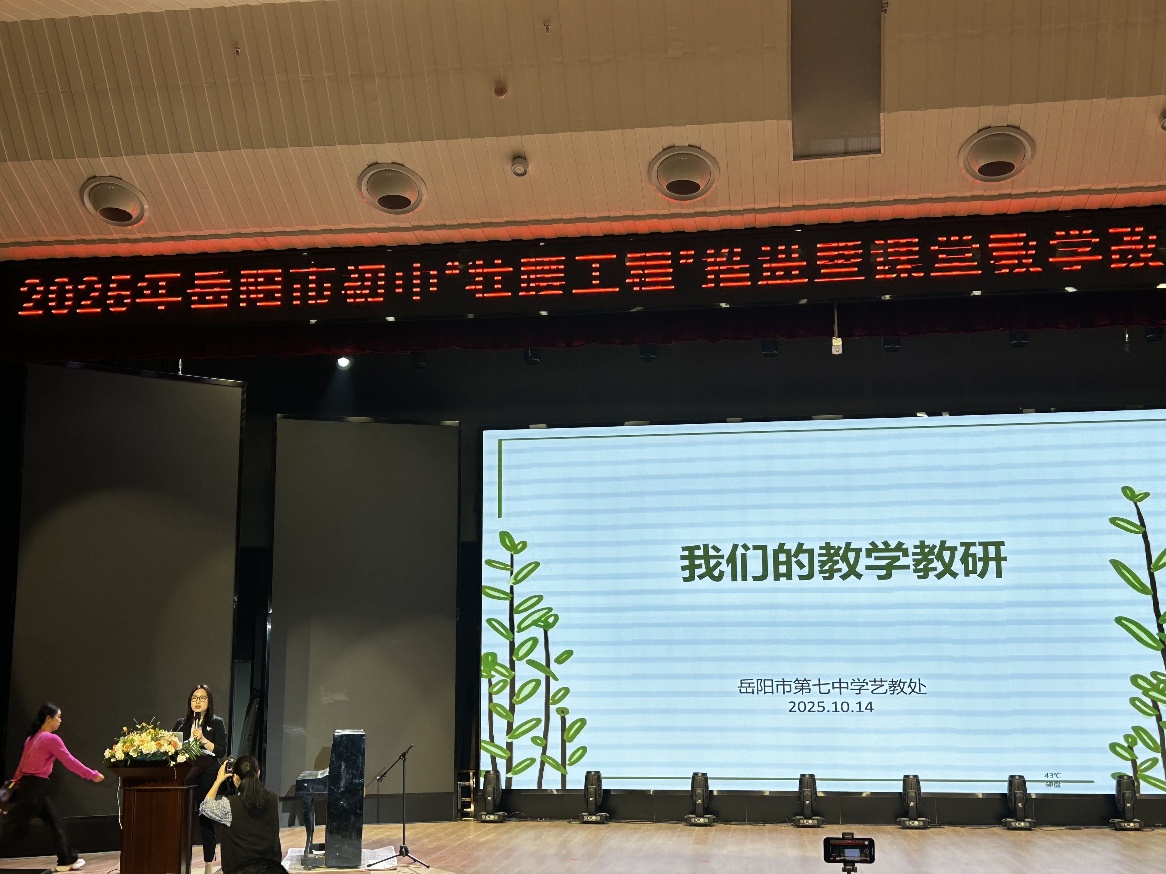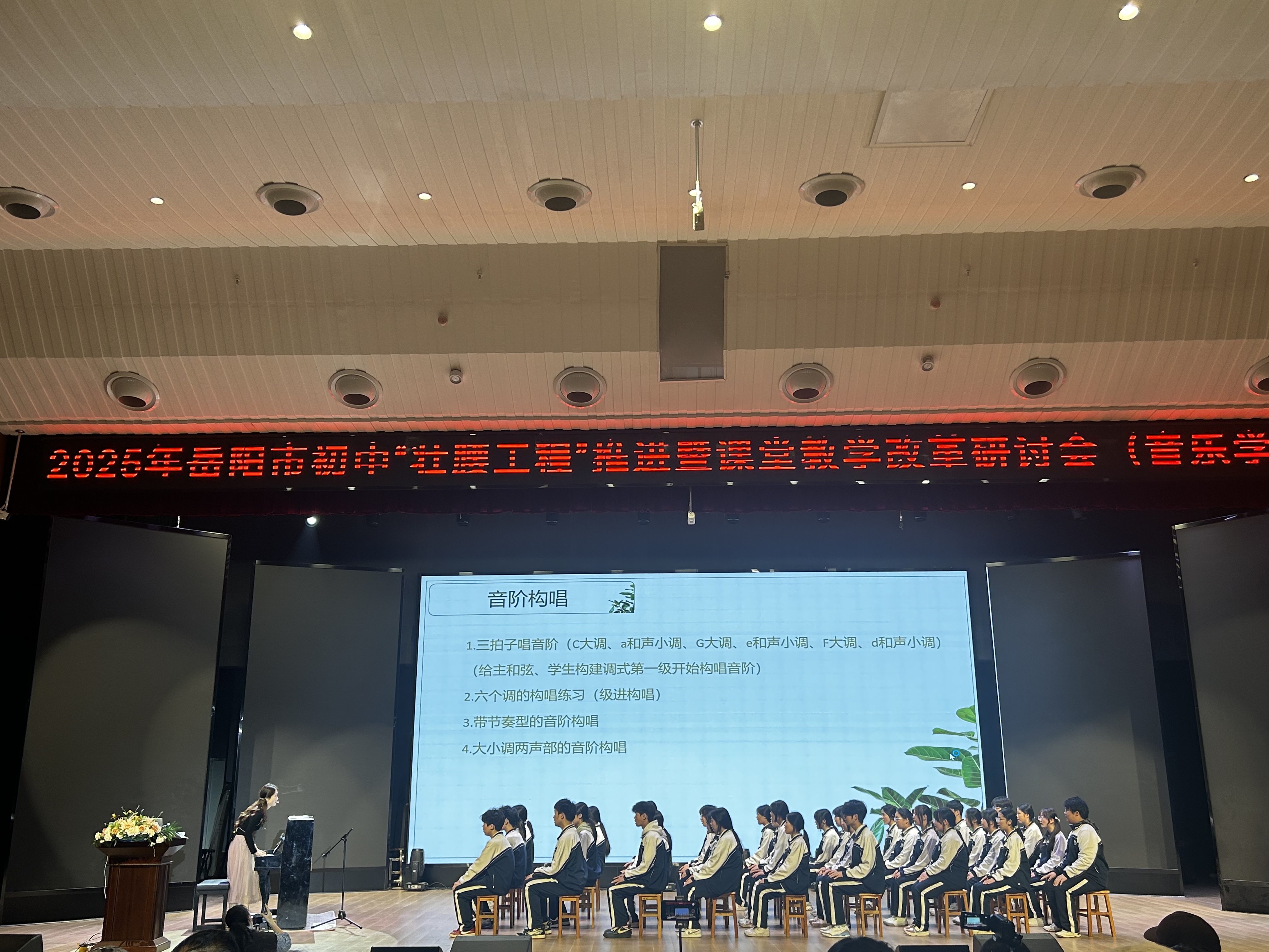 为聚焦新课标,深耕实践课,提升本科生教学实践能力,2025年10月14日,2023级本科音乐教育专业学生在周安安老师的带领之下,前往岳阳市第七中学参加岳阳市初中“壮腰工程”推进课堂教学改革研讨会。