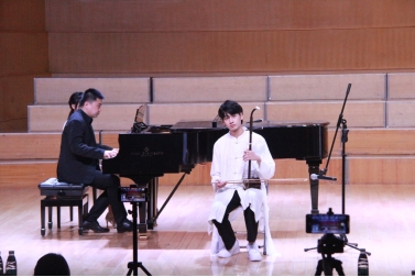 随后黄熙帆、黄晋之先后演奏《塔兰泰拉舞曲》、《楚颂》、《巴赫小咏叹调》、《江河云梦》等音乐作品,西洋乐器与民族乐器的碰撞,让整场音乐会高潮不断,听众们掌声连连,赞不绝口,温和的灯光与丝丝入扣的旋律让人如痴如醉。