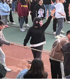 比赛过程紧张而激烈,参赛选手们像一只只小猛虎一般,每个人都手持粗绳,咬紧了牙关,把全身的力气都凝进其中。拉拉队员的助威声随着绳索的前后移动而此起彼伏。在一等奖的竞争中,2003班的拔河战术给全场观众留下了深刻的印象。一上场,这支队伍的选手脚脚相连,心心相印,呼吸同频,身子后倾,双手死死地拽住麻绳,哨声一响,他们的力量瞬间凝聚,以压倒性的力量瞬间解决了“战斗”,博得现场观众的阵阵喝彩。为了比赛的胜利,所有参赛队员均使出了吃奶的劲。有一位同学的手拽出了血迹,但她仍没有放弃。她说“虽然我的力量很小,但是我们是一个集体,赢要一起赢,输也要一起输”。