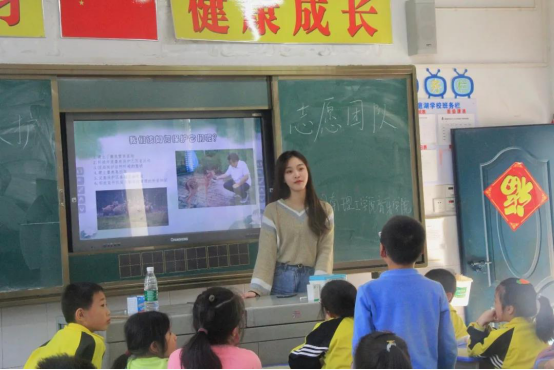 团队负责人林馨悦同学以动画片的形式向同学们引入保护麋鹿的主题,接着以问答形式来增强课堂气氛。随后依次为孩子们介绍麋鹿的外形,麋鹿的生活环境和主要食物来源,让同学们对于麋鹿有了初步的了解。最后,团队负责人林馨悦深入讲述麋鹿由盛转衰的濒危历史,使同学们体会到野生动物生存的不易,从而达到此次宣讲活动预期目的。