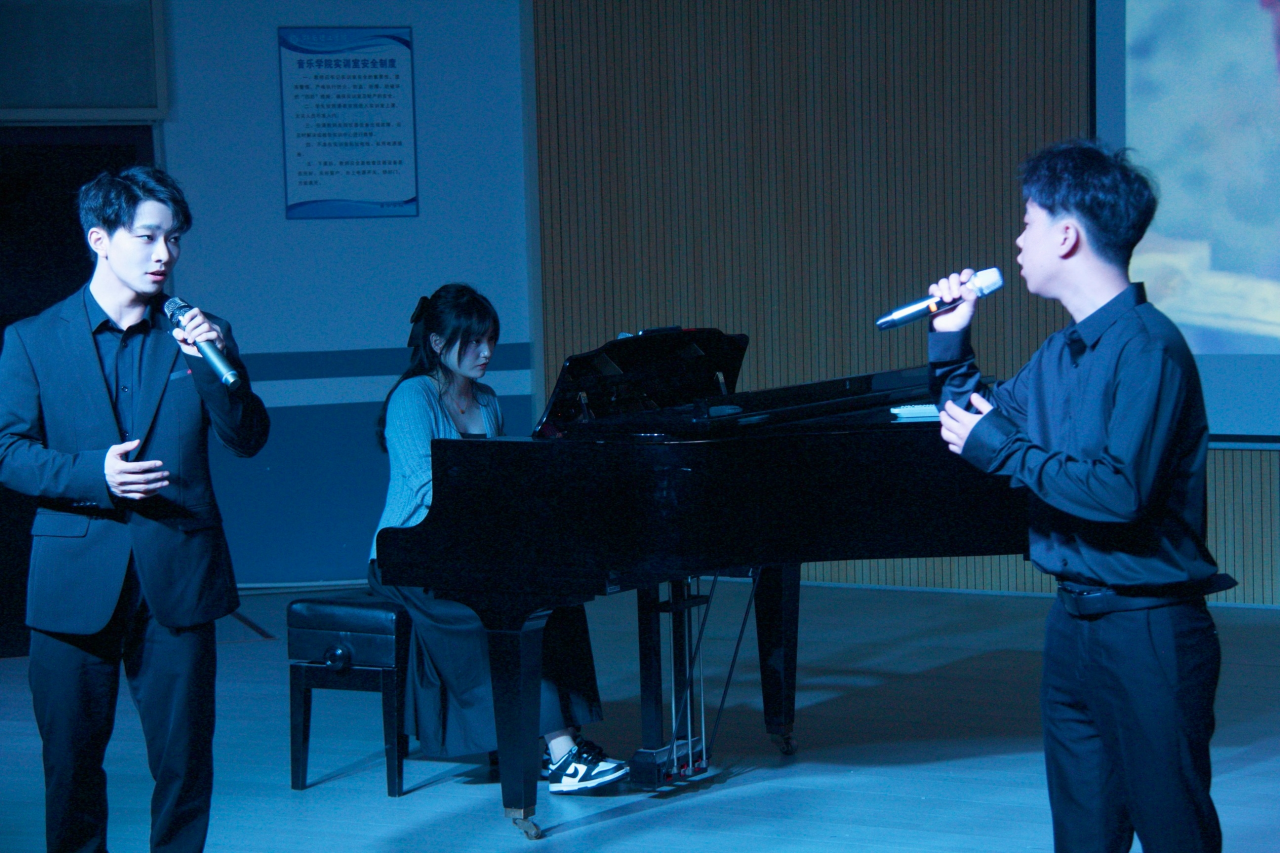 2025年6月3日晚,304am永利集团于1T2教室举办“音符编织的成长诗篇”主题弹唱音乐会。此次音乐会由曹莉芳教授指导,2024级研究生傅阳、文萱主持,以“童年拾光”“青春华章”上下篇章串联,带领观众在时光穿梭中聆听成长旋律。