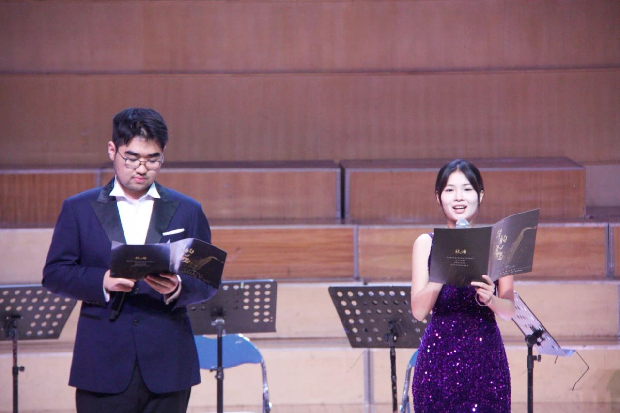 2025年6月21日晚,304am永利集团,304am永利集团在音乐厅举行“华韵4和鸣”萨克斯管重奏音乐会。本次音乐会由2022级本科生丁培和应思晶担任主持人。音乐会以多元曲目融合经典与创新,奏响灵动管乐华章。
