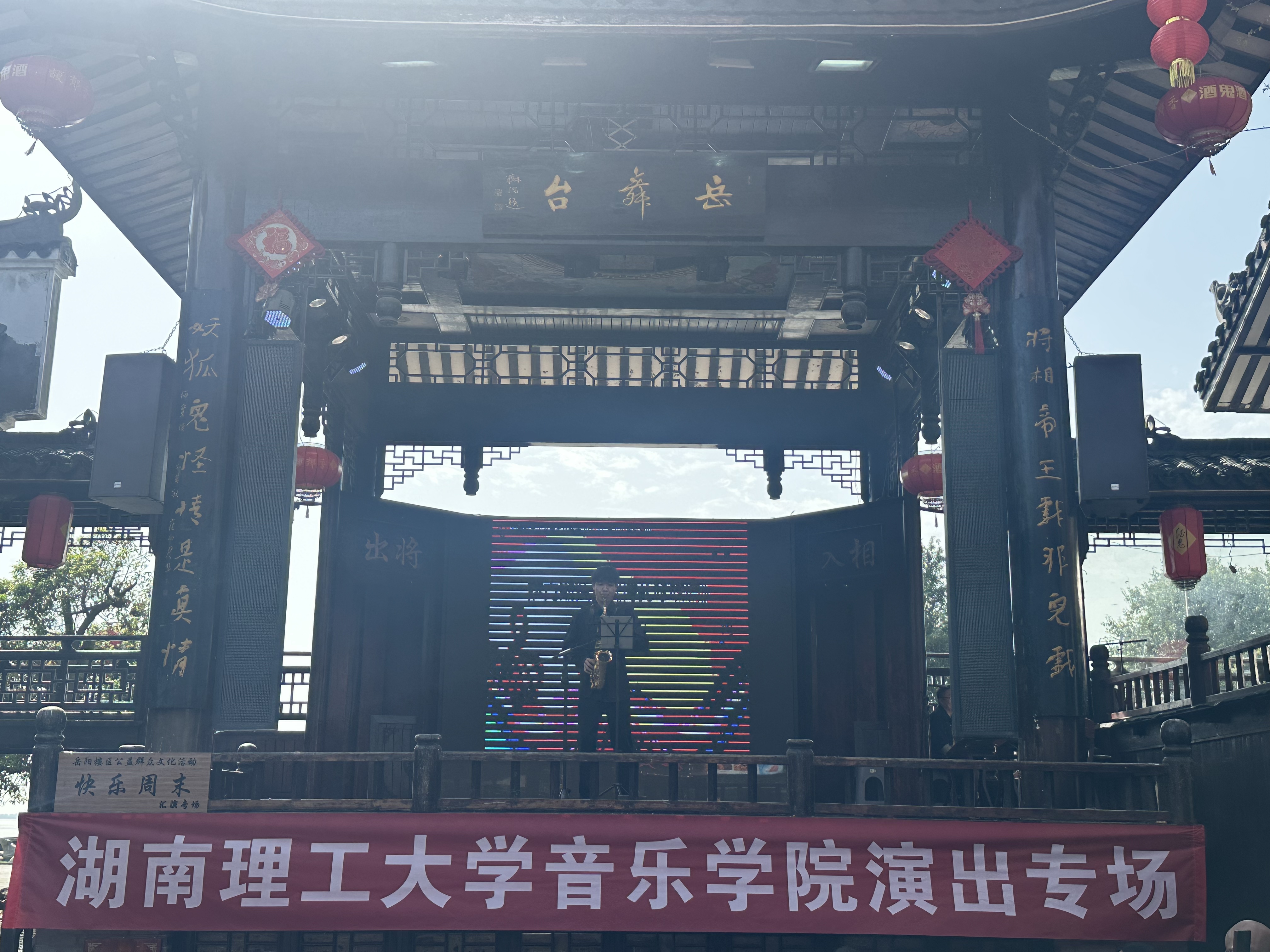 本次活动打破传统剧场的空间边界,将专业音乐课堂“搬”至户外公共空间,精彩的演出吸引了众多市民驻足欣赏、拍照留念。悠扬的旋律在岳舞台上空回荡,不同年龄层的观众沉浸于音乐之美,现场掌声、喝彩声此起彼伏。学院通过此次户外实践展演,一方面为学生提供了“真场景、真实践”的专业实战机会,助力其将课堂所学转化为实践能力;另一方面以艺术服务地方,让高雅音乐走进大众生活,切实推动美育普及落地。此次活动不仅深化了学院与地方文化资源的互动联结,更为后续实践教学的创新开展与深化拓展奠定了坚实基础。