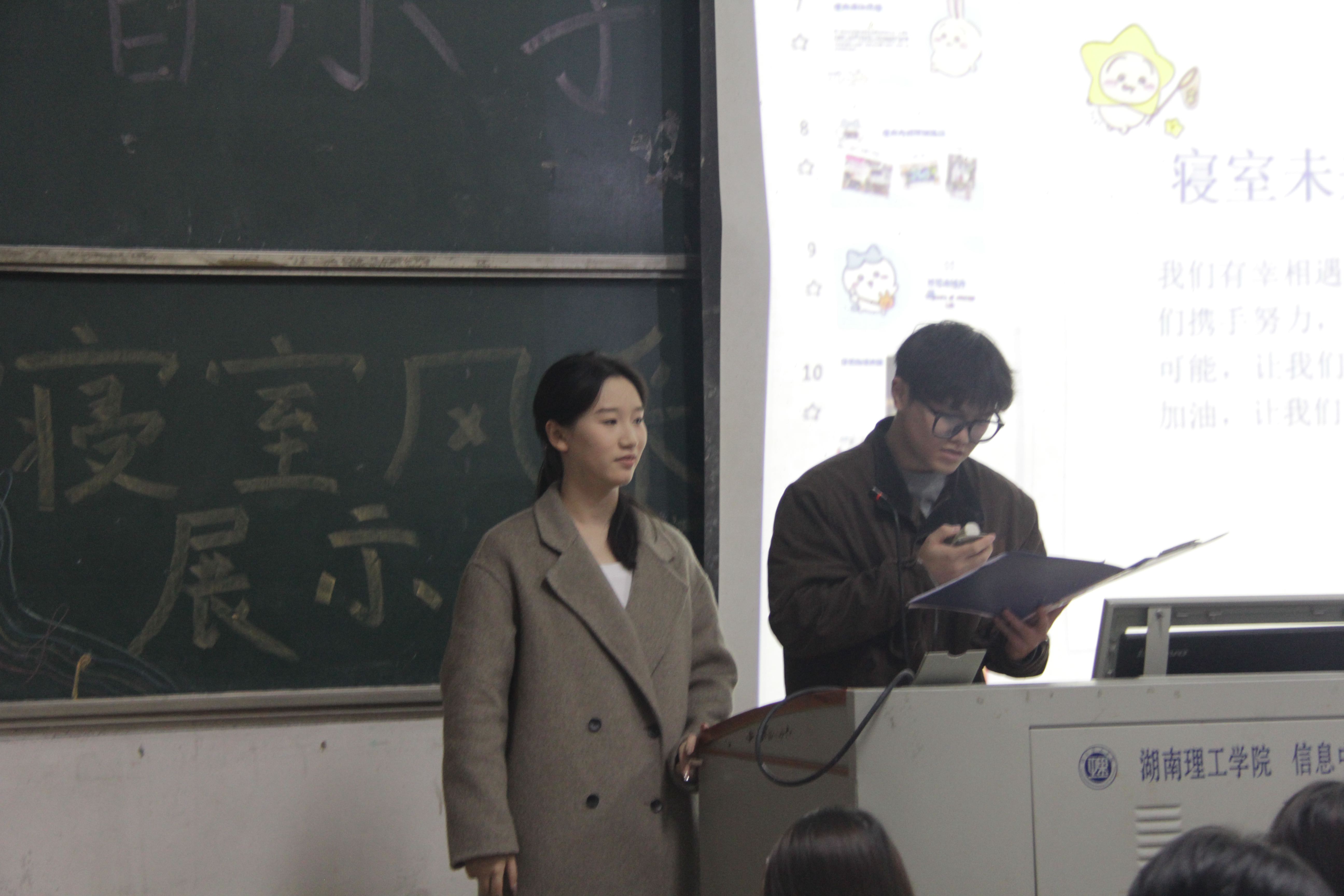 竞赛现场,参赛者们通过精心打造的PPT,向评委们生动展示了宿舍成员的兴趣爱好和宿舍独有的文化韵味。他们用机智幽默的语言,把宿舍生活的精彩瞬间逐一呈现,使得现场氛围异常活跃。与此同时,文娱女生部特别策划了一系列精彩纷呈的小节目,为赛场注入了更多活力与欢声笑语。