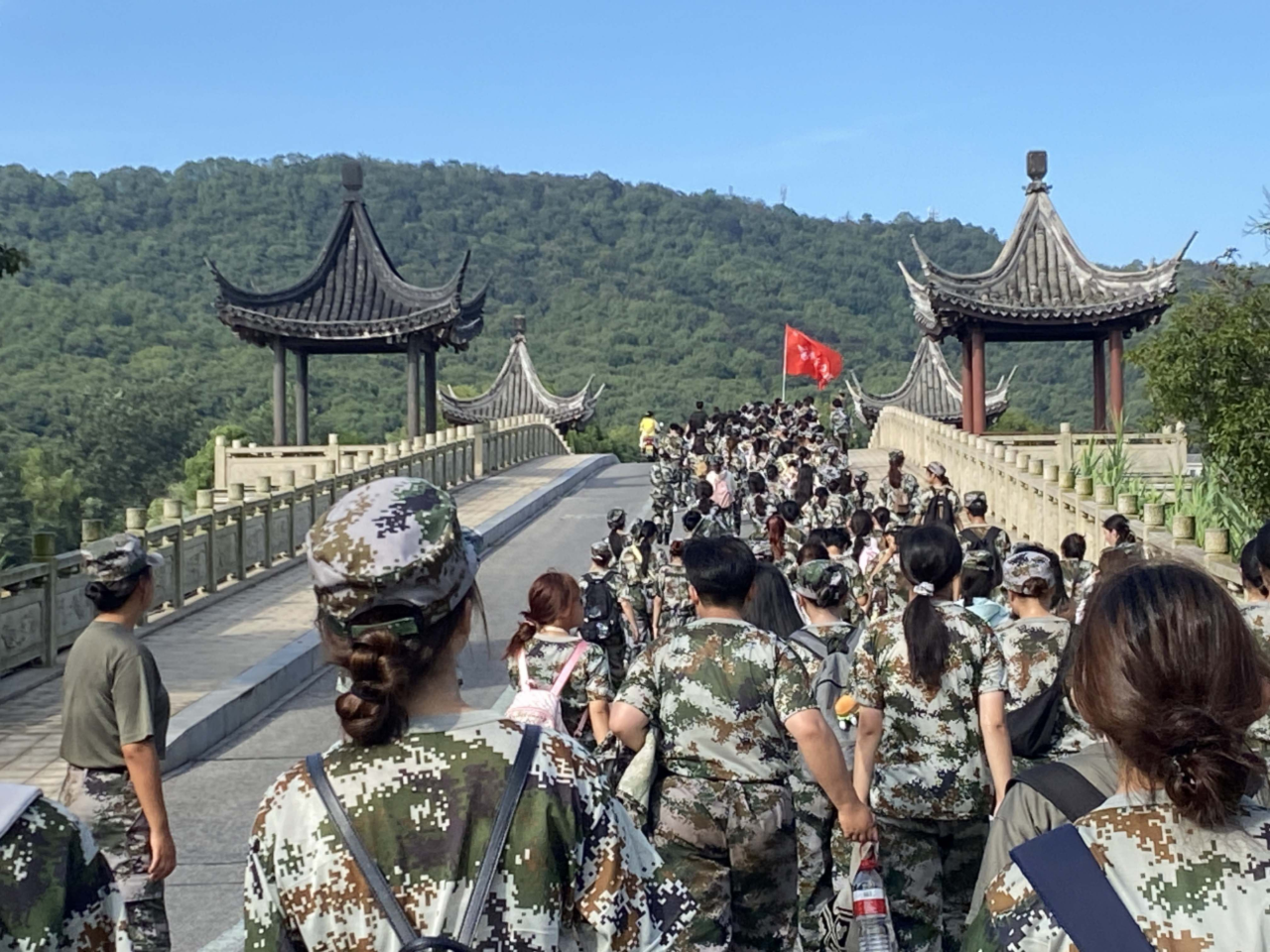 新生们迈着坚定的步伐向洞庭湖出发。