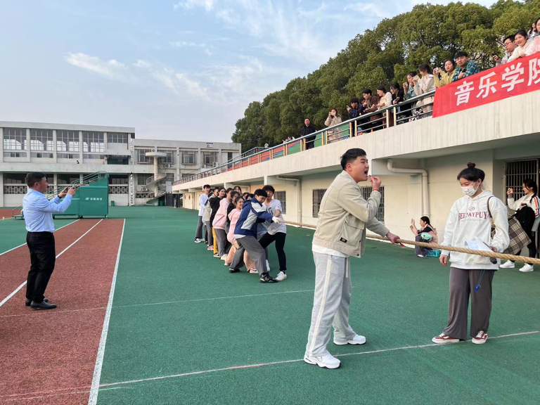 比赛在同学们的欢呼声中正式开始。双方参赛队员迅速进入“一级战备”状态:双手紧握麻绳,身体向后倒,重心后移。随着裁判的一声令下,双方队员都卯足了劲,双手拽着绳子向后拉。观战的师生被比赛的氛围点燃了,他们在队伍两旁呐喊助威,各个队伍间的拉锯战也把比赛推向了高潮。