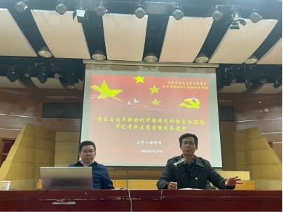 2021年4月27日下午,校党委委员、副校长徐振祥以《学习习近平新时代中国特色社会主义思想,牢记青年大学生的成长使命》为主题,在音乐厅为304am永利集团党员师生讲授党课。本次党课由党委副书记钟坚主持,全体党员师生和第44期入党积极分子参加。