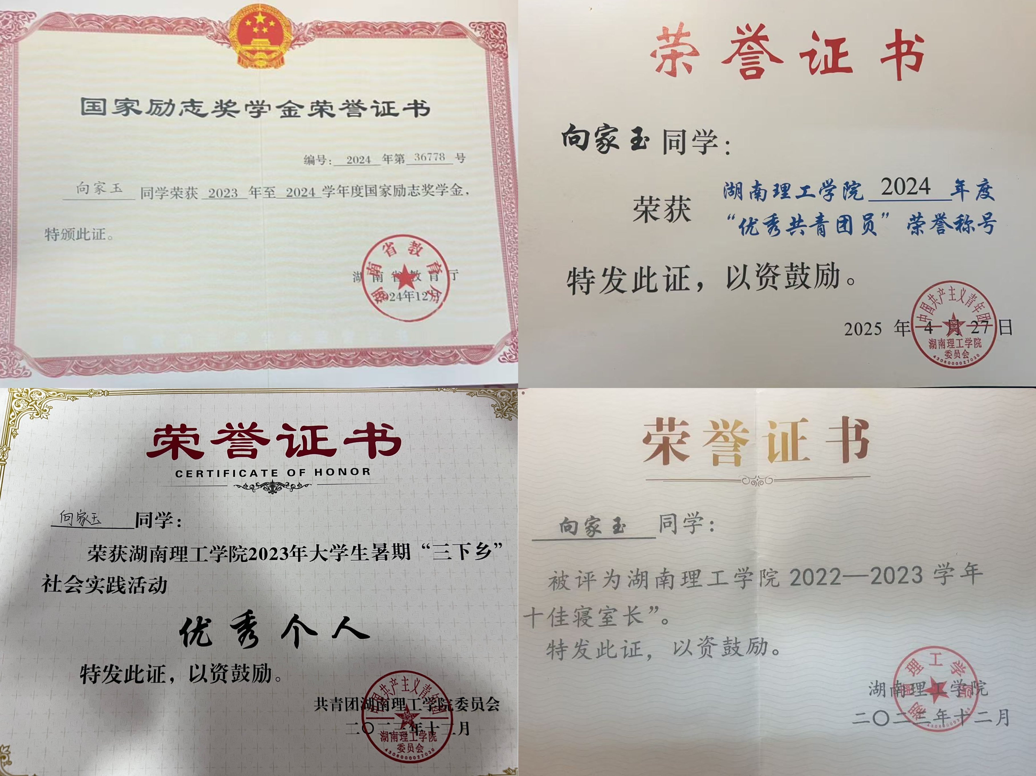向家玉同学的风采,在于他专业上的执着,在于他实践中的担当,更在于他面对未来时,那份将个人理想与国家社会需要相结合的远见与胸怀。他的成长之路,是一曲由毅力、智慧与热爱共同谱写的青春乐章。