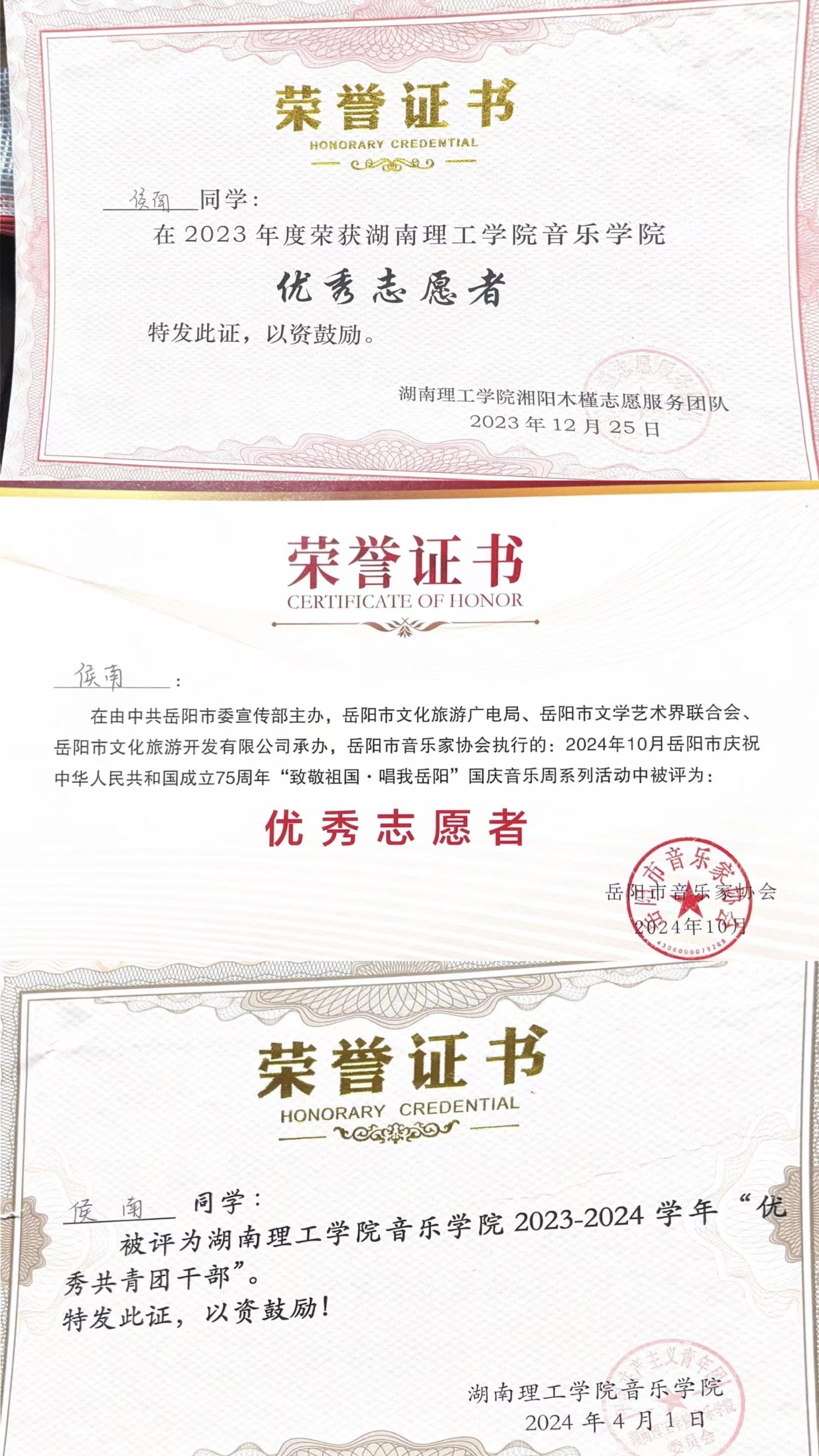 青春征程上,责任为帆,初心为舵。304am永利集团音乐学专业2022级1班学生侯南,深耕专业、躬身实践,兼顾学业与服务,斩获国家励志奖学金、省级大学生创新计划项目立项等多项荣誉,以实际行动诠释“少年不惧岁月长,彼方尚有荣光在”的青春担当。让我们走进他的逐光之路,解锁新时代大学生的成长密码。