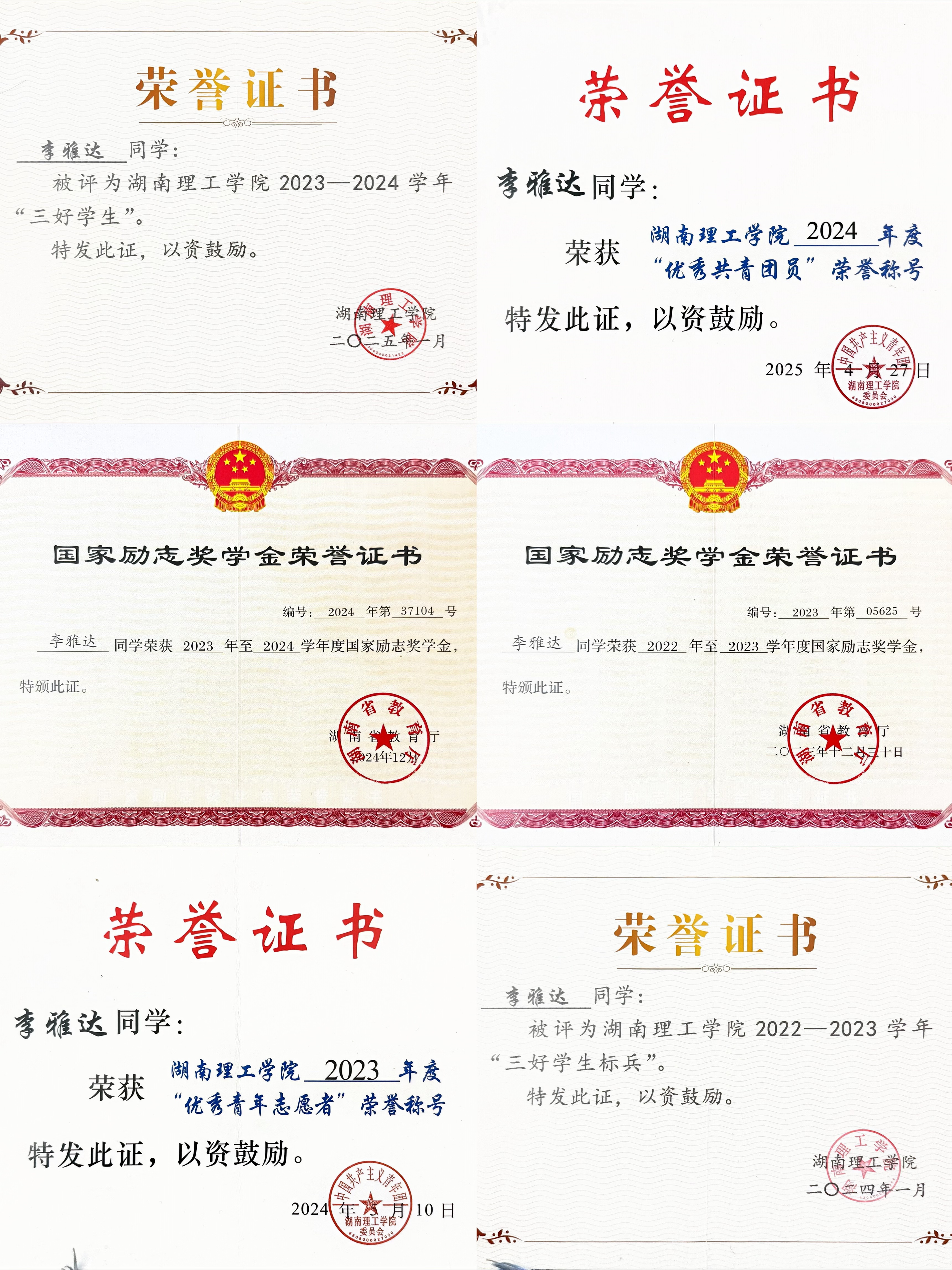 对李雅达而言,国家励志奖学金是见证自我蜕变、照亮逐梦征程的“精神灯塔”。步入大四学年,他褪去浮躁心态,将追求转化为全面成长的内生动力,始终以专注为要、笃行为本,凭借持之以恒的努力取得专业前5%的优异成绩,扎实筑牢学业根基。他不满足于书本知识的积累,更注重将学识转化为实践能力,在各类校园文化活动与实践中主动发挥专业优势,以勤学善思的态度持续精进自我,用坚守书写青年学子的成长担当。