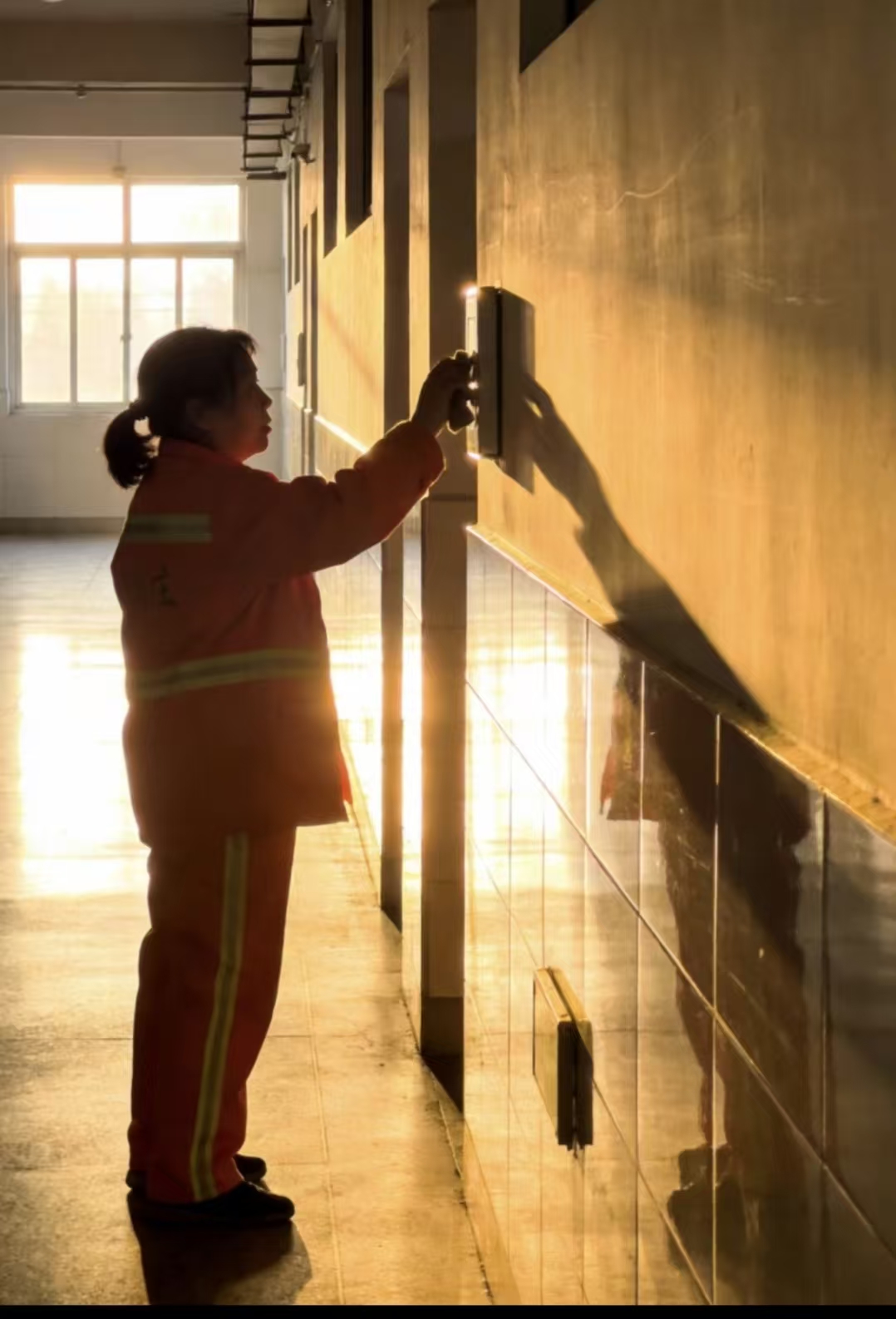 清晨六点,校园还沉浸在薄薄的雾气里,第一缕光正从教学楼的檐角悄悄探出头来。那时,多数人还在梦乡,而她的脚步声已经轻轻响起在空荡荡的走廊里。没有人问过她的名字。同学们只知道,每天走进教室时,地板是亮得能映出人影的,窗台没有一丝灰,连讲台上的粉笔盒都摆得端端正正。有人偶尔晚自习后路过走廊,看见她还弓着腰,用抹布一寸一寸地擦着墙角。灯光把她的影子拉得很长,像一支沉默的笔,在寂静的夜里写着什么。