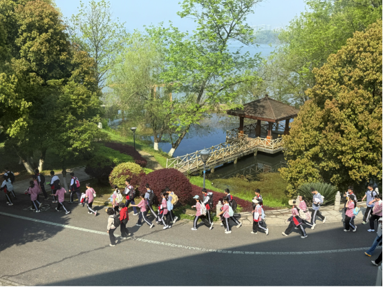 【配图:2026年4月1日实拍图,春日湖畔,身着校服的同学们结伴远足,队伍中互帮互助的身影】