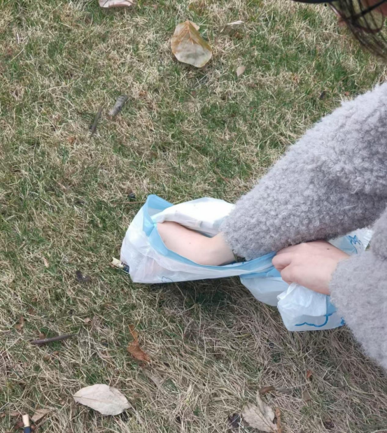 把散落的奶茶杯、烟蒂一一收拢进袋里
