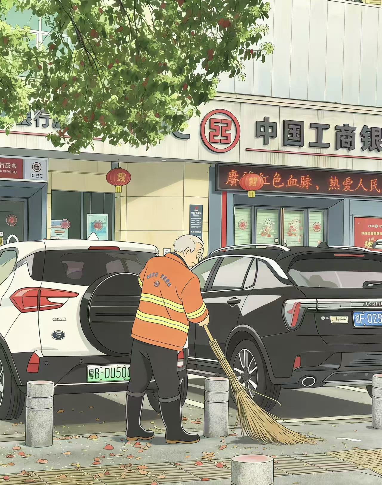 雨丝打湿了他的帽檐,也打湿了手里的扫帚。橙红的身影在灰蒙的天色里格外暖,他扫的不是落叶,是把城市的泥泞,一点点扫成我们脚下干净的路。大爷,您弯腰的样子,比雨天的路灯更亮。原来最动人的风景,从来都在这些默默弯腰的背影里。