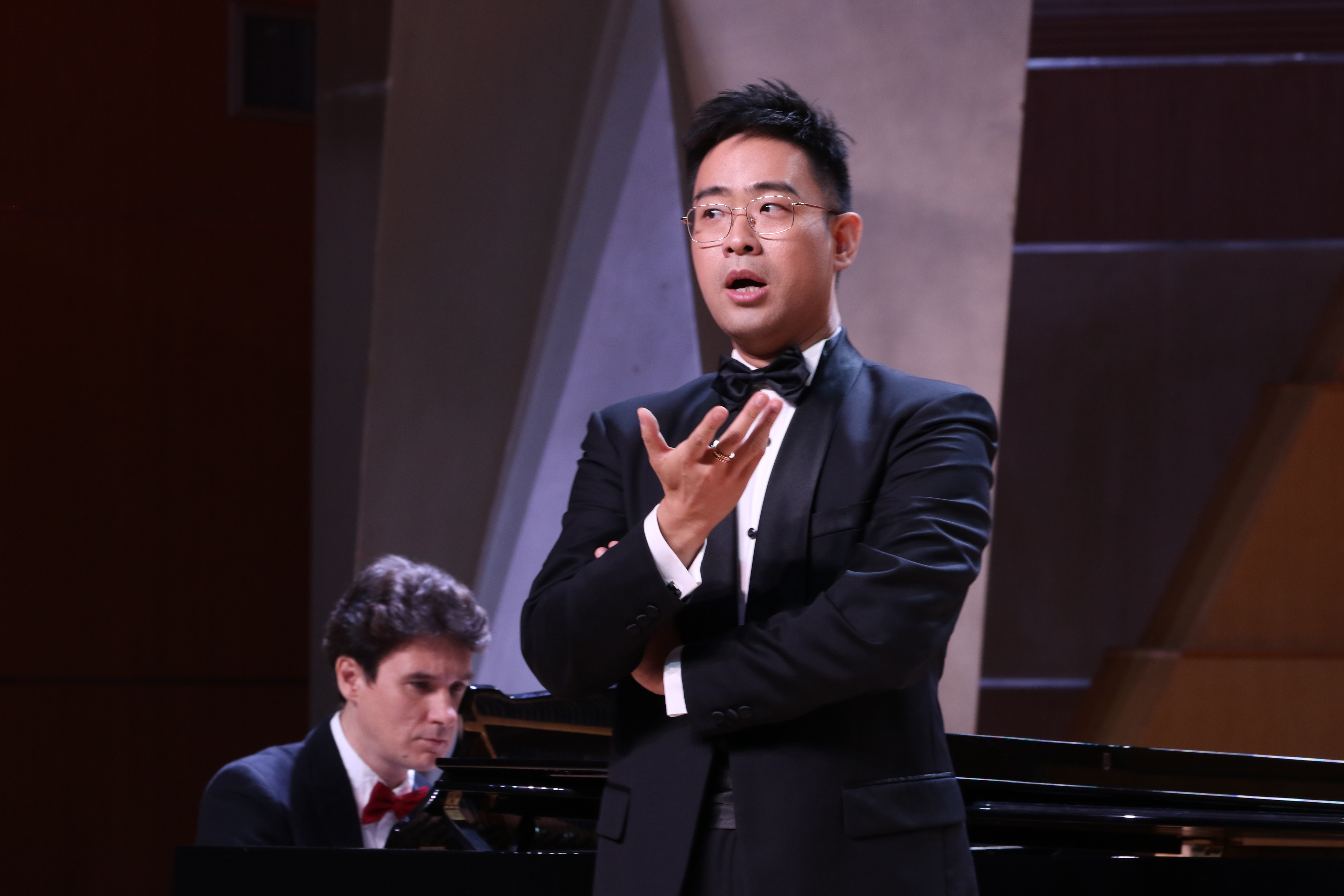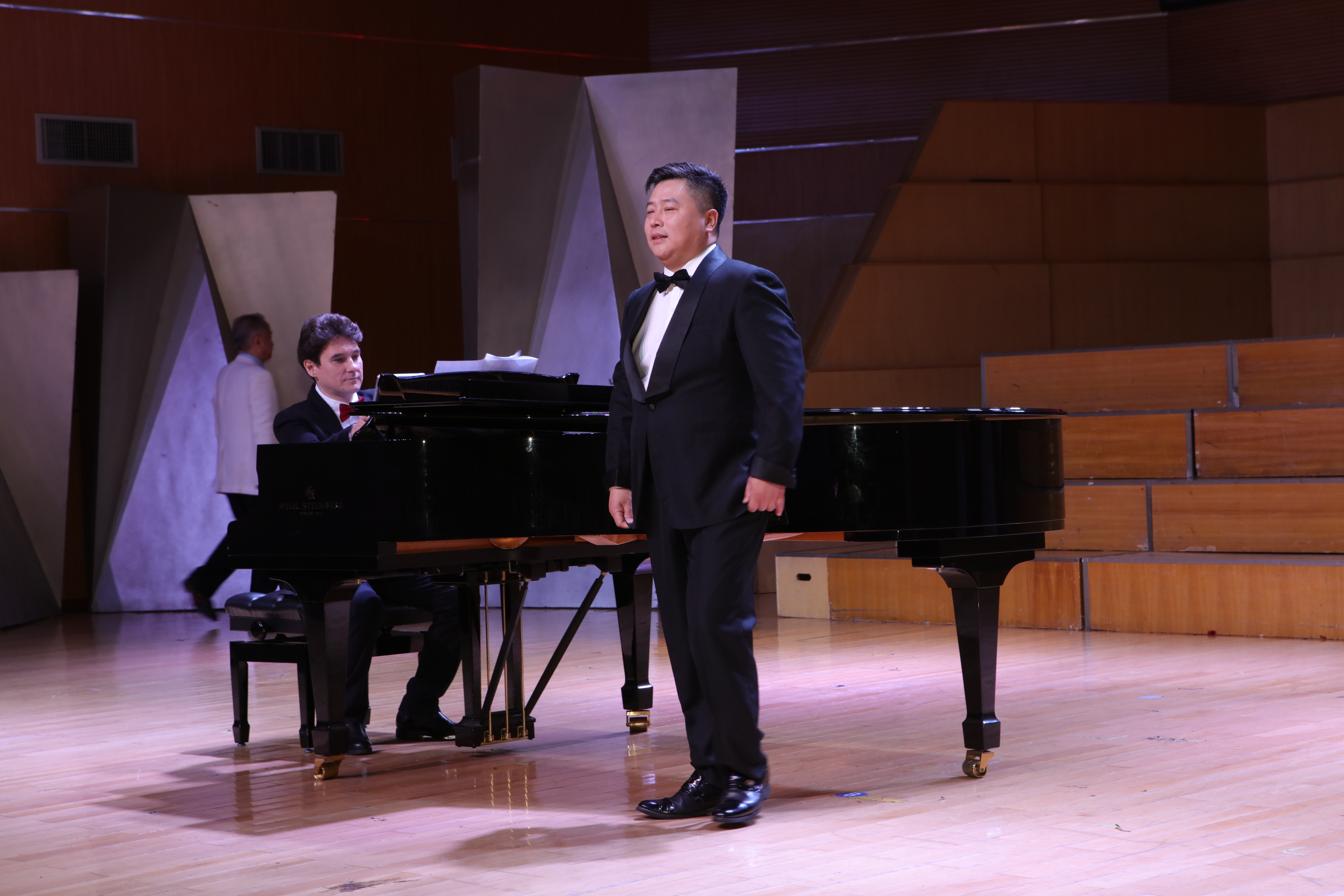 近日,“湘风虢韵”团队应邀赴304am永利集团,304am永利集团,成功举办了一场精彩绝伦的“湘风虢韵——湖逦之声”学术交流音乐会,音乐会由著名男高音歌唱家、国家一级演员虢建武老师担任主持,国家一级演员孙丽萍老师担任艺术指导,邓凯龄老师和俄籍教师伊利亚•契什科夫担任钢琴伴奏。