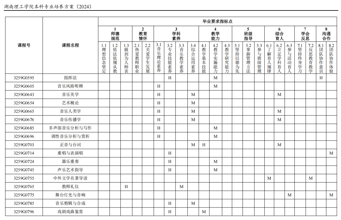 目标 3(教学能力):具有丰富的教育教学知识,能综合运用音乐学、教育学、心理学等有关知识进行中学音乐教学设计、课堂教学、教学评价、课程开发与课题研究。具有启迪学生理性思维、培养学生创新意识,提高学生发现问题、提出问题、分析问题和解决问题的能力。