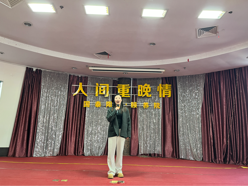 本次志愿服务活动以音乐会演出的形式呈现,由金泰运、文舒婷主持。活动在《山丹丹花开红艳艳》的优美歌声中拉开帷幕,随后研究生志愿者陆续登台演唱了《采红菱》《映山红》《月亮代表我的心》 《小路》等耳熟能详的经典曲目,美妙绝伦的音乐勾起了在场爷爷奶奶们的回忆。最后,全体研究生合唱《绒花》《不忘初心》,将现场气氛推向了高潮,赢得台下老人们的阵阵掌声。
