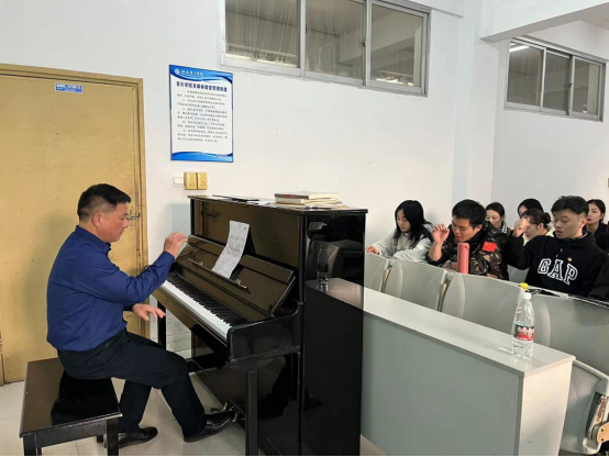 在正式学习两首歌曲之前,黄皓华书记分别为同学们分析了两首歌曲的背景、旋律以及其中包含的情感。在歌曲的学习、演唱过程中,黄书记对于同学们的声音技巧、情感、歌曲强弱处理等方面提出要求,并且带领学生共同学习了这两首歌曲。最后黄皓华书记为同学们伴奏《国际歌》、《国歌》,在党员们的齐唱声中,本次党日活动圆满结束。
