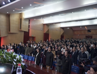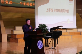 黄皓华书记以“半条棉被同冷暖,一江碧水竞风流”为主题,通过贯穿红色歌曲的历史背景和历史意义,以激昂的旋律配合新颖的形式,让大家在感悟红色经典旋律中,重温党史、铭记初心。他声情并茂的带领在场的师生重温了党的历史,主讲湖南的革命历程,他从岳麓书院的“实事求是”讲到习近平主席视察书院时的久久凝思。
