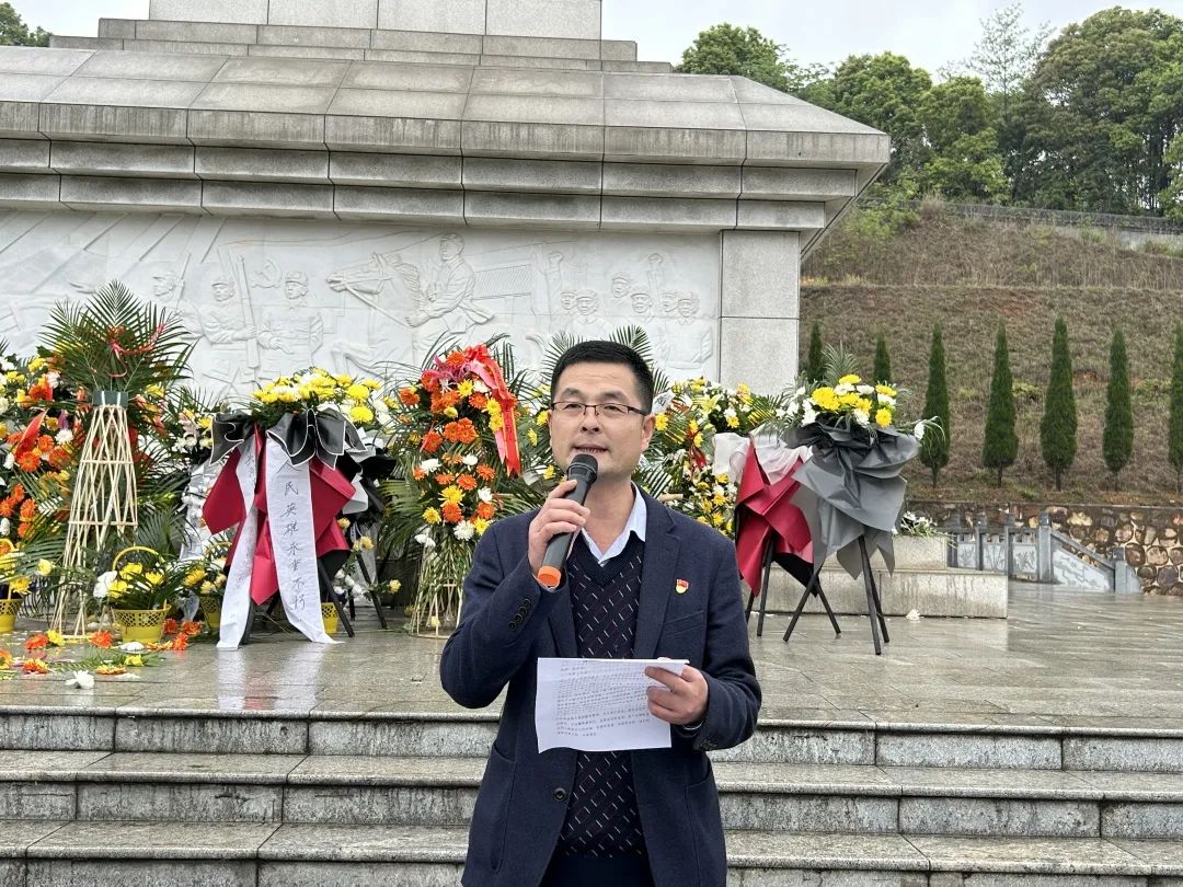 接着,党委书记王云朋发言。他表示我们今天来纪念革命先烈,就是不要忘记他们为党和人民建立的卓越功勋,不忘他们用鲜血和生命铸就的民族精神,不忘他们舍生取义换来的幸福生活。要从他们身上汲取伟大的力量,把他们不怕困难、不畏艰险、英勇献身的精神,转化为锐意进取、认真学习、扎实工作的实际行动。作为伟大祖国新一代的接班人,我们要为民族振兴、国家富强而努力奋斗。
