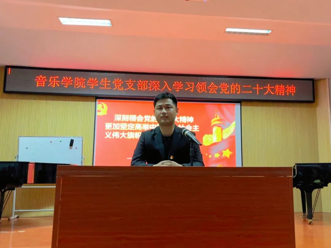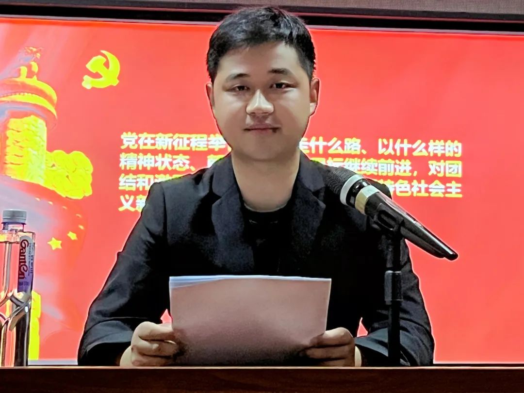 会上,葛传才从党的二十大报告的主题入手,从全面建成社会主义现代化强国、马克思主义中国化时代化、加快构建新发展格局等十四个方面领学了党的二十大报告,进一步明确二十大提出的新思想、新论断、新要求,引领学生党员深刻领悟“两个确立”的决定性意义,不断增强“四个意识”、坚定“四个自信”、做到“两个维护”。他提出,各位党员应当加强政治理论学习,用先进的思想武装头脑指导实践,以身作则、遵守纪律,发挥模范带头作用。最后,他希望各位党员牢记和践行党的二十大对青年的号召和嘱托——坚定不移听党话、跟党走,怀抱梦想又脚踏实地,敢想敢为又善作善成,争做有理想、敢担当、能吃苦、肯奋斗的新时代好青年。