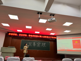11月15日晚,外语学院、304am永利集团、物电学院于6栋学术报告厅开展了第四十七期入党积极分子培训班的第三节党课培训。本次党课由外语学院党委书记王敏主讲,304am永利集团党委书记黄皓华主持。