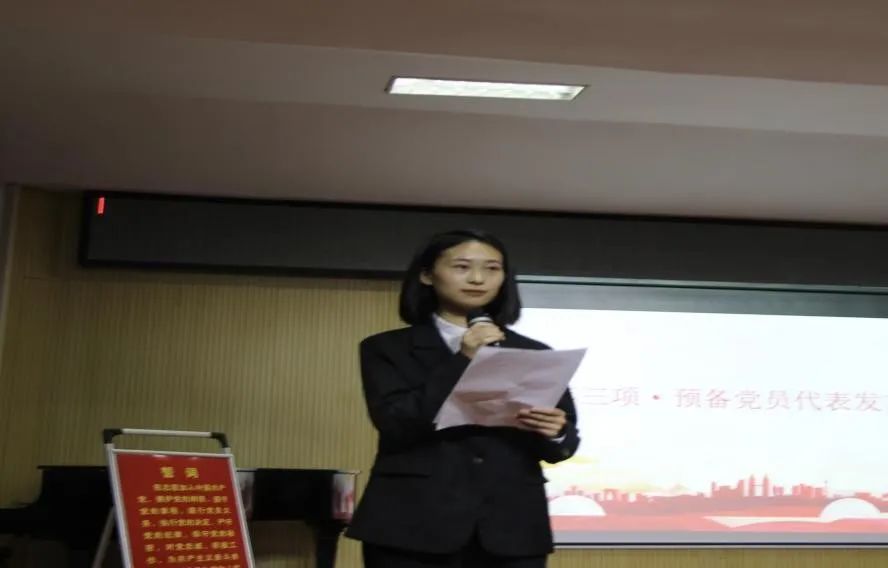首先,由学生党支部书记葛传才老师宣读了学校党委批复。随后刘姣同学代表新发展党员发言,她表示始终坚定共产主义理想和信念,不忘党员身份,发挥先锋模范带头作用,同时会以更高的要求鞭策自己,不断学习,为中华民族伟大复兴作出自己的贡献。