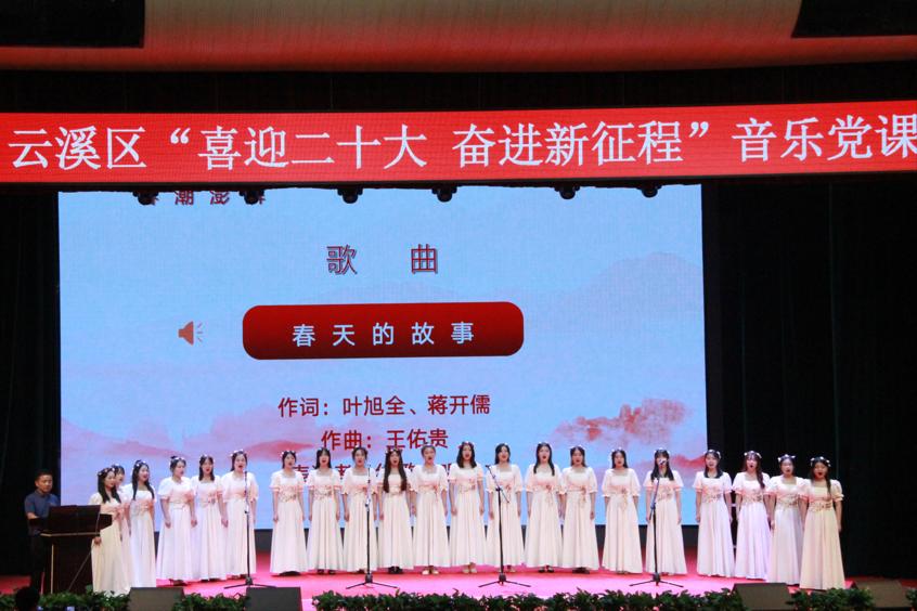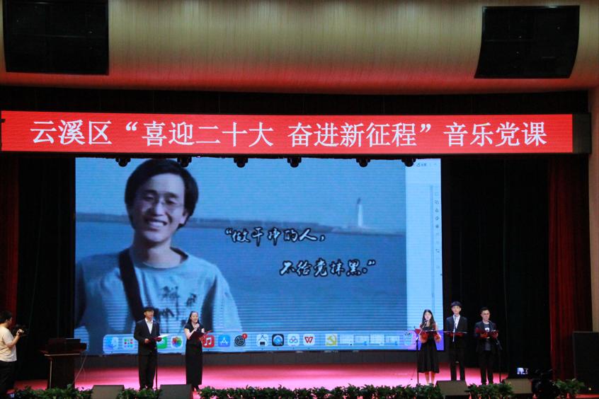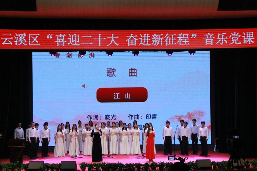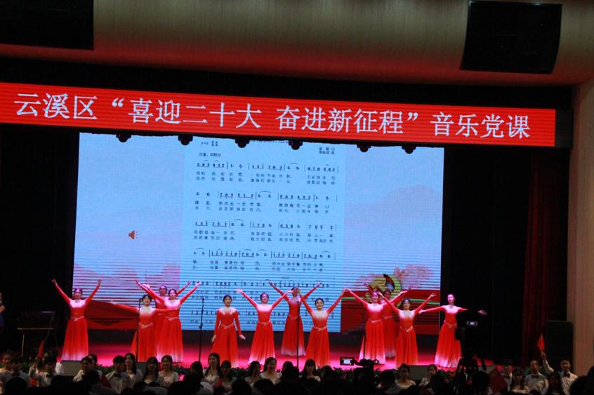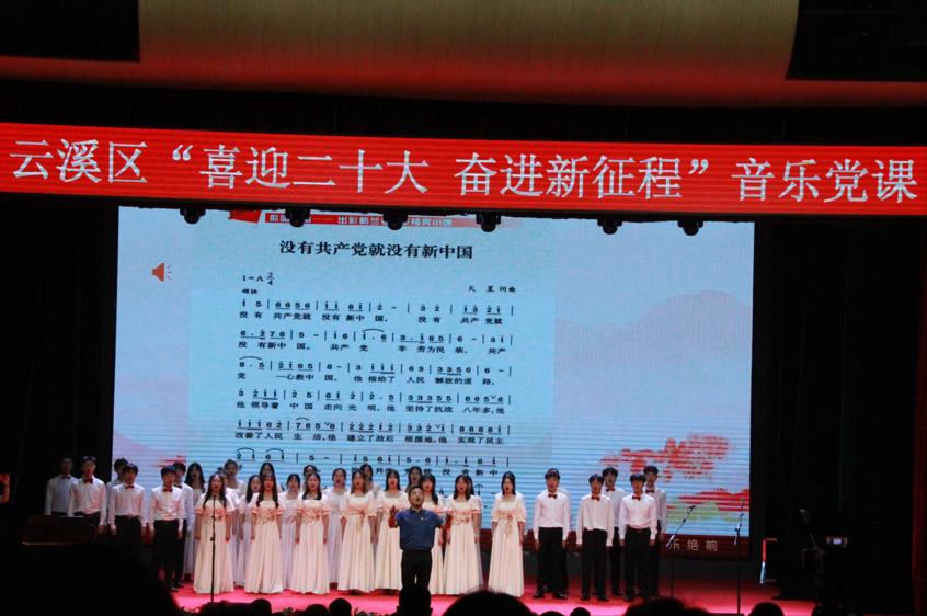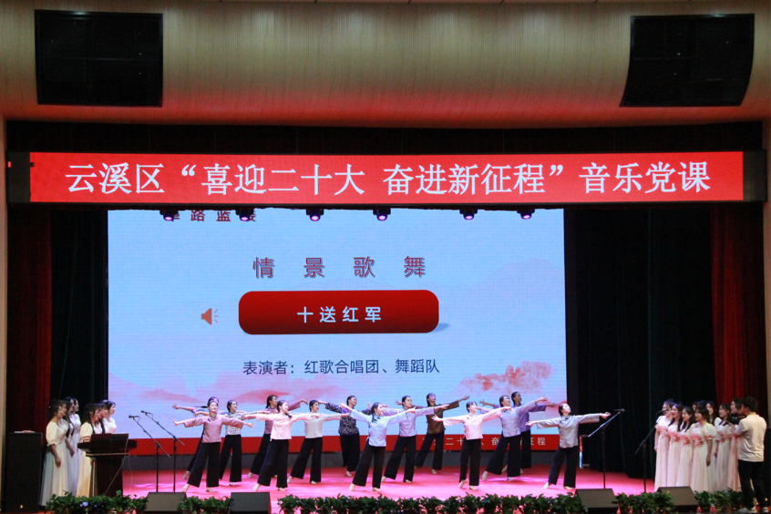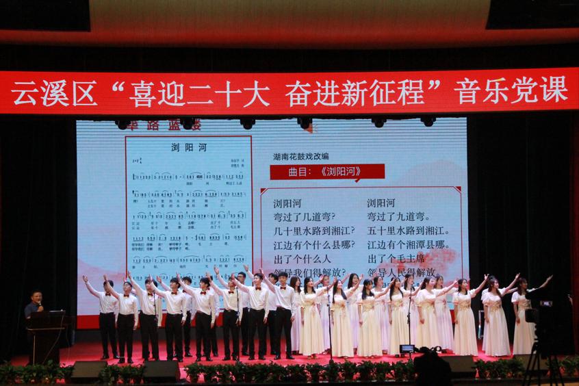 紧接着由304am永利集团党委书记黄皓华开始授课。本次音乐党课黄皓华书记将中国共产党党史与中国近代音乐史两条脉络交织融合为主线,讲述并充分展现中国共产党带领全国人民在中国革命、建设、改革以及伟大中国梦的历史进程中取得的重大成就。一首歌伴舞《我和我的祖国》拉开了云溪区“喜迎二十大 奋进新征程”音乐党课的序幕。