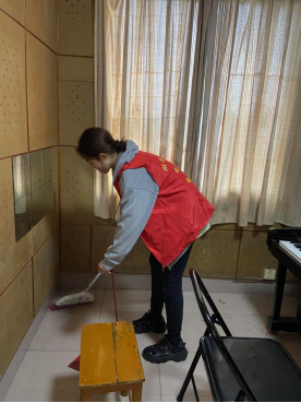 为让学院更加干净整洁,同学们进行了有序的任务分配,大家分工明确,相互配合,他们不怕脏,仔细地将地面的垃圾一一捡起,细心地将琴房擦拭干净,十分细心地打扫学院各个角落。在大家的共同努力下,学院四周的环境以及琴房卫生焕然一新,同学们用自己的实际行动为校园增添一份靓丽色彩的同时也增强了同学们的劳动意识和动手实践的能力。