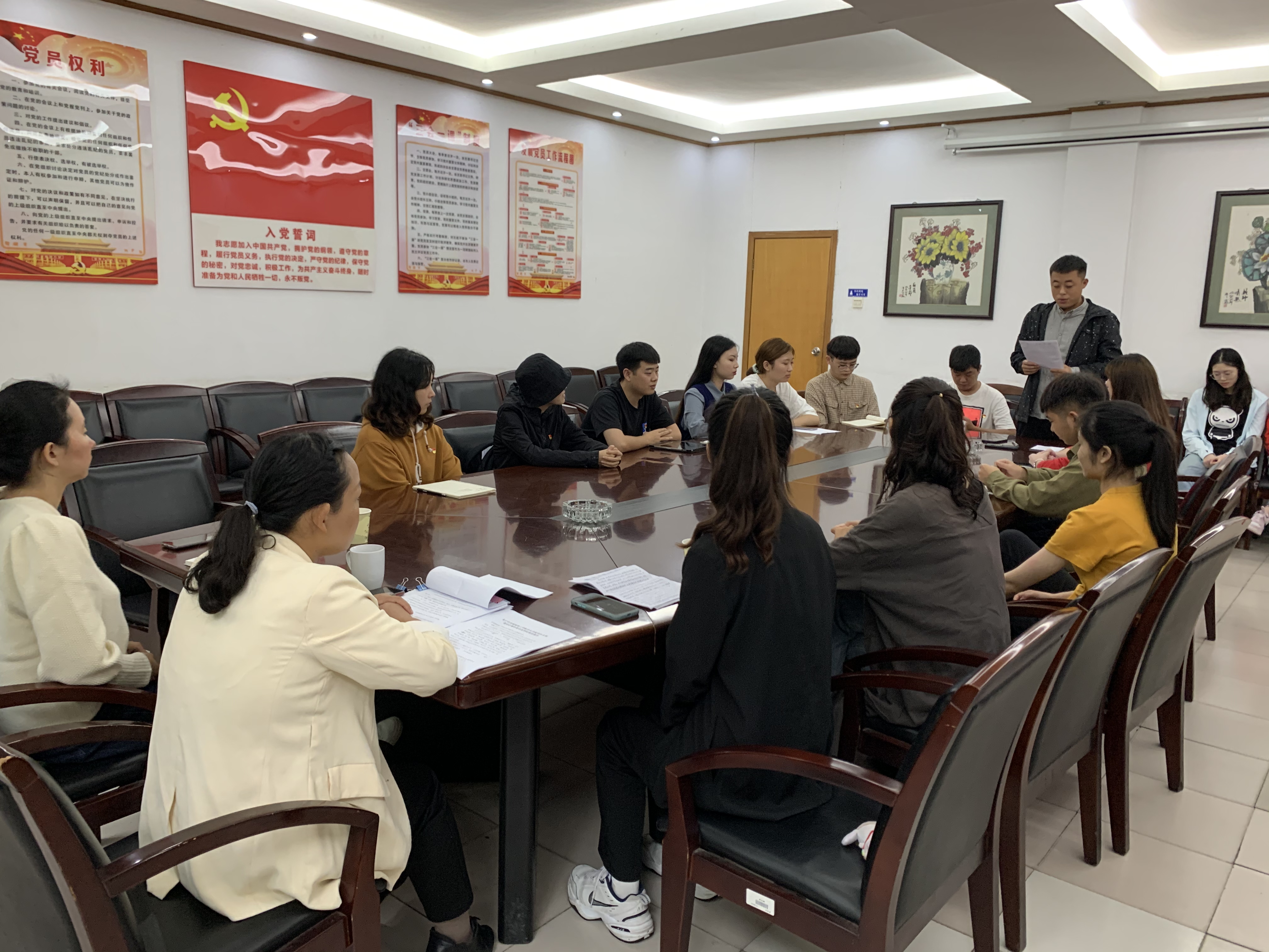 随后,刘姣花老师发表讲话。她充分肯定了这次组织生活的召开的重要意义,她说,会上党员同志能深入联系思想、学习、工作、生活实际,深挖根源,发言认识深刻,体会真切,触及灵魂,是一次难得的支部整风运动。她要求与会党员同学要时刻牢记自己的党员身份,守住初心,勇担使命,强化责任意识,切实改进工作作风,更好的服务群众、奉献社会。会议最后一项,学生支部全体党员重温入党誓词。