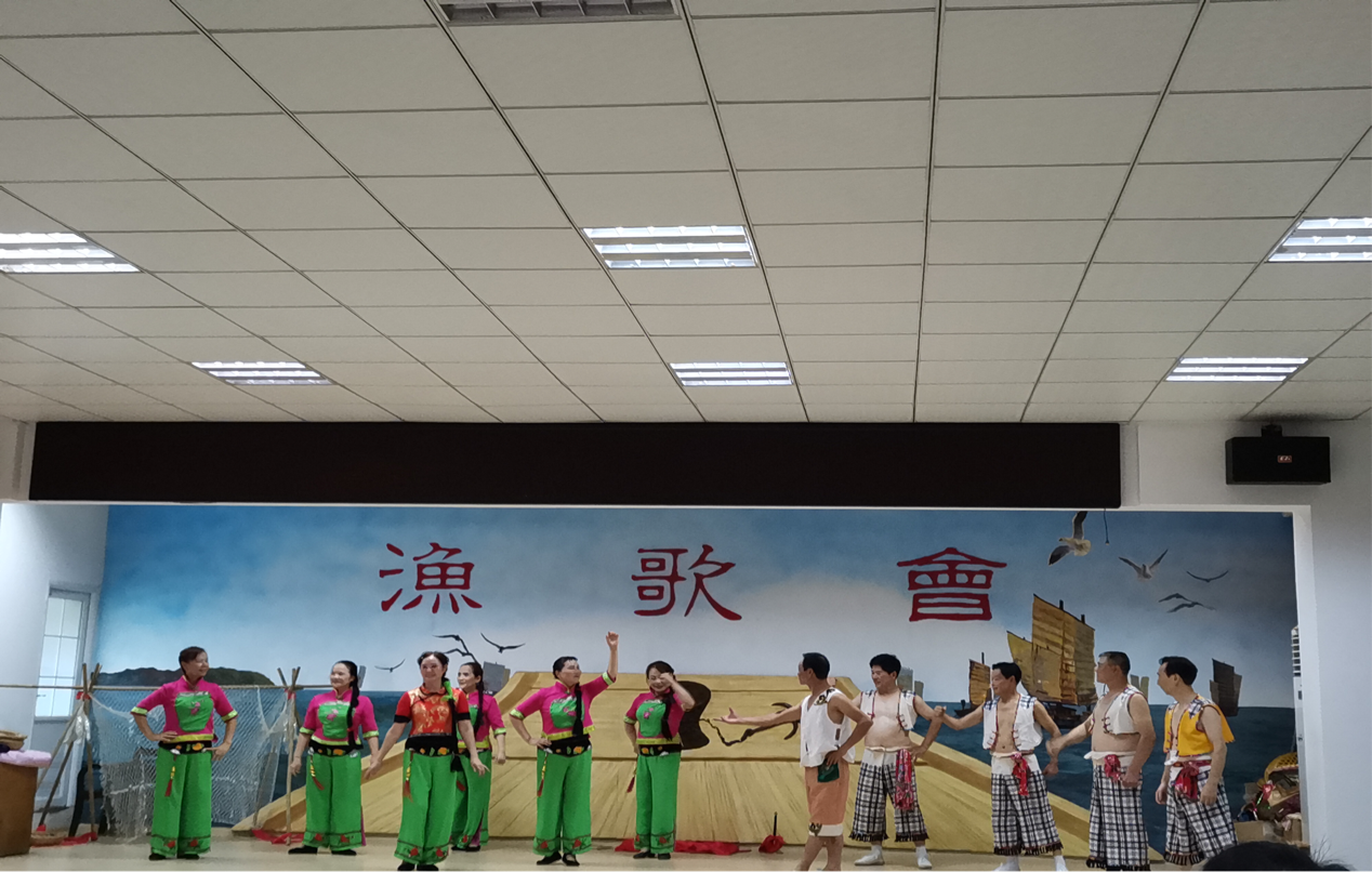 活动于下午14:30正式开始,分为渔歌表演和渔歌教唱两个主要环节。在表演环节,首先由陈岳林先生以边说边唱的形式,生动形象地为党员师生们介绍了“洞庭渔歌”这一国家非物质文化遗产的历史文化背景和音乐、民俗特征与价值,介绍了岳阳洞庭渔歌传习馆近些年来和304am永利集团共同努力,在“洞庭渔歌”文化的挖掘和研究、发展和传承以及先后成功申报省非遗和国家非遗的工作历程和成果。之后,陈岳林及其团队为党员师生们表演了曾获国家金奖的渔歌作品《光棍娶亲》等四部“洞庭渔歌”短剧,生动再现了湖区渔民原生态生活场景,将现场气氛推向高潮。最后,曾获湖南省大学生志愿活动金奖的304am永利集团洞庭渔歌传承志愿团队的同学们现场演唱了《吃茶歌》《蓑衣歌》两首经典渔歌。
